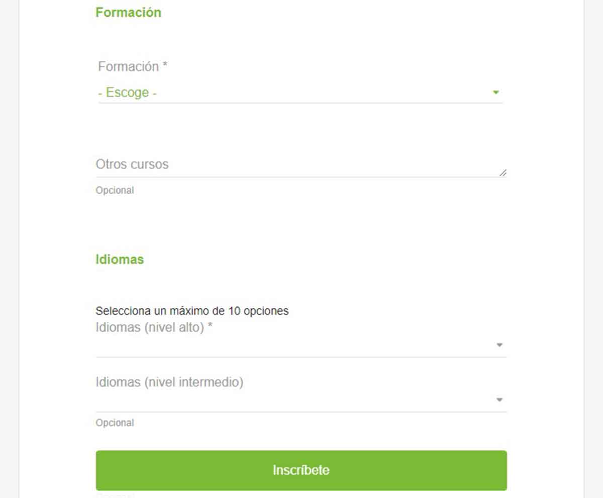 También tienes que completar los datos relacionados con la formación académica y en idiomas.