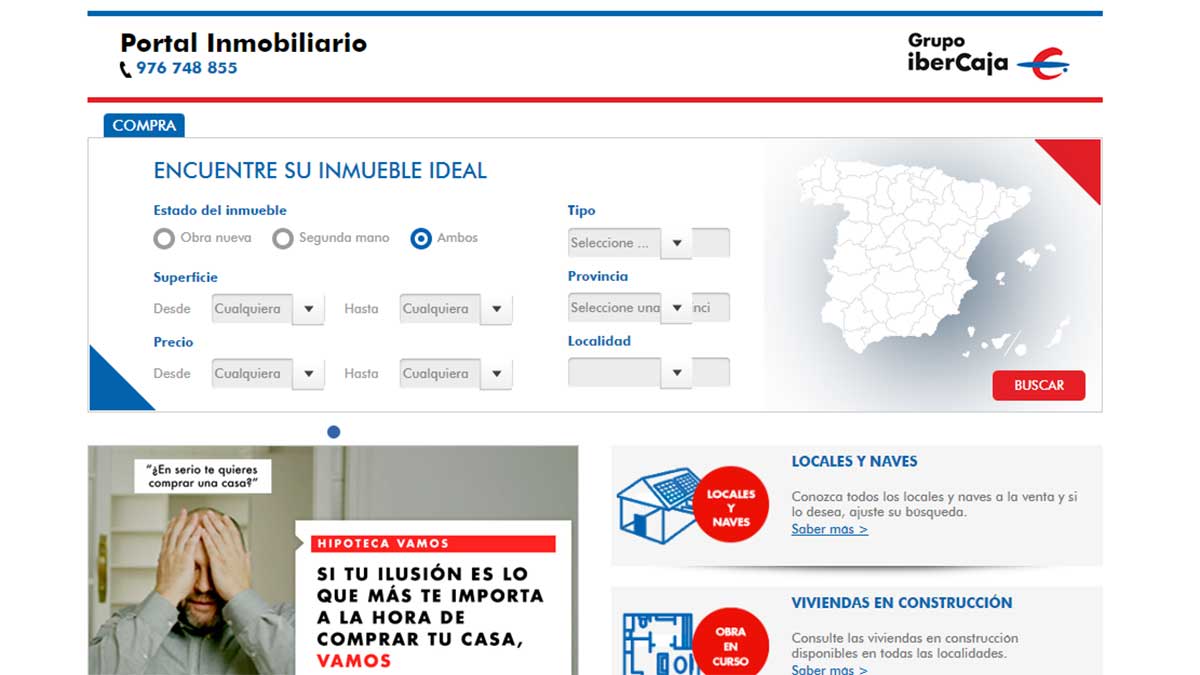 Si quieres consultar el catálogo completo de pisos, tienes que acceder al portal inmobiliario de Ibercaja. En la página principal hay un buscador en el que puedes seleccionar qué tipo de vivienda deseas ver.