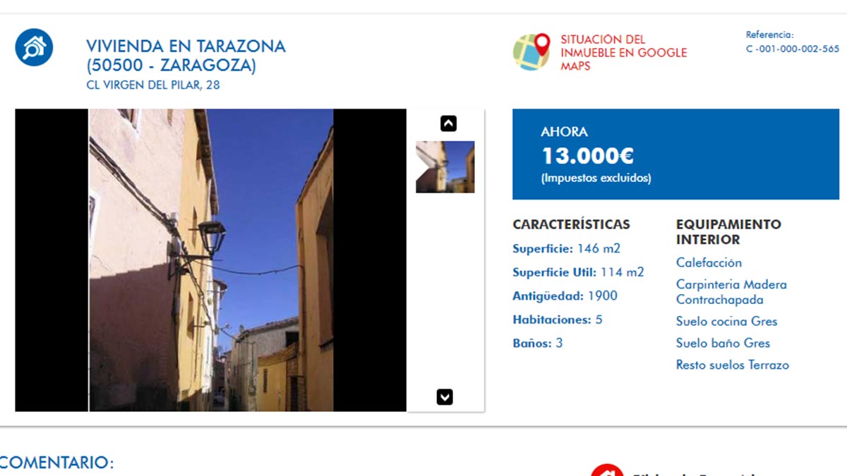 Otras ofertas similares se encuentran en Zaragoza, donde se vende una casa por 13.000 euros. En concreto, la vivienda está ubicada en Tarazona, dispone de 5 dormitorios y una superficie de 146 metros cuadrados.