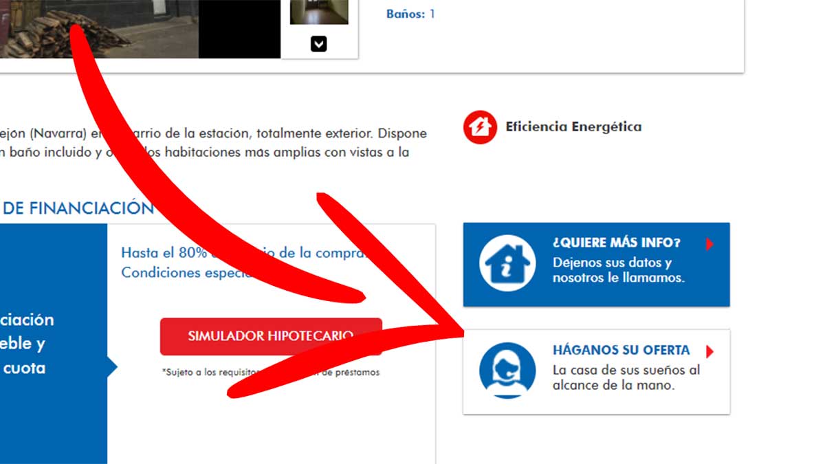 Para realizar cualquiera de las dos operaciones, tienes que buscar los botones que se encuentran justo debajo de la información del inmueble. Para solicitar más información tienes que pulsar sobre ‘¿Quiere más info?’. Mientras que para hacer una propuesta o concertar una visita a la casa, tienes que pulsar sobre el que dice ‘Háganos su oferta’.