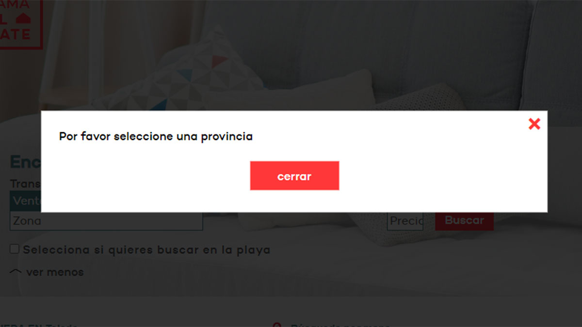 Para ver cualquiera de los pisos en venta es obligatorio seleccionar una provincia. De lo contrario, la plataforma no va a mostrar ningún resultado de búsqueda.