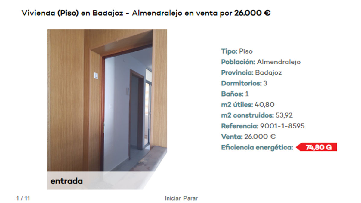 De menor a mayor precio, algunos de los pisos por menos de 30.000 euros disponibles en Retama Real Estate son los siguientes: