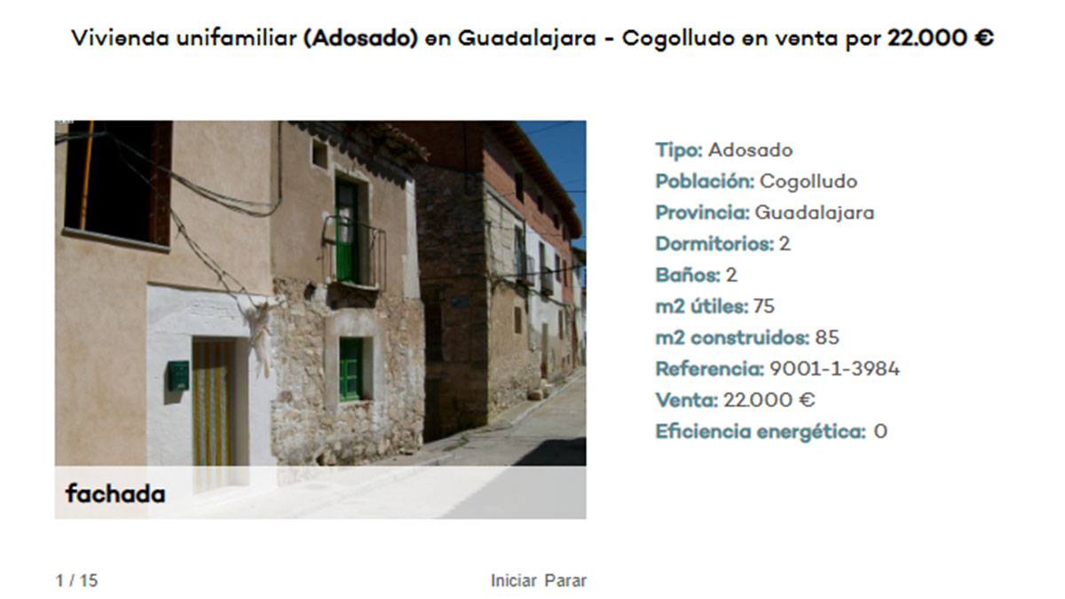 En la localidad de Cogolludo, perteneciente a Guadalajara, hay una casa adosada en venta por 22.000 euros. Cuenta con dos habitaciones y dos baños.
