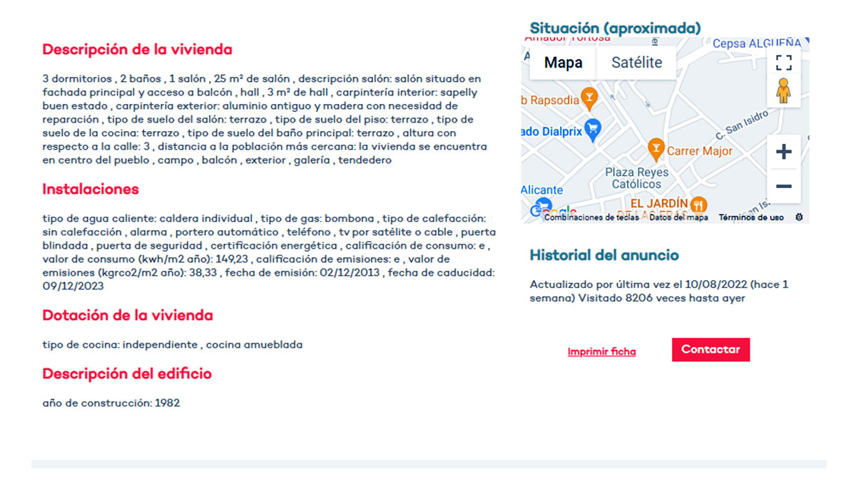 Además de los datos, en cada una de estas ofertas hay una pequeña descripción sobre la casa con más detalle con la que puedes hacerte una idea de cómo es la casa. También aparece información importante como la última vez que se ha actualizado el anuncio, para saber si es una oferta que está vigente y es nueva o de hace tiempo y la cantidad de gente que se ha interesado por el inmueble.