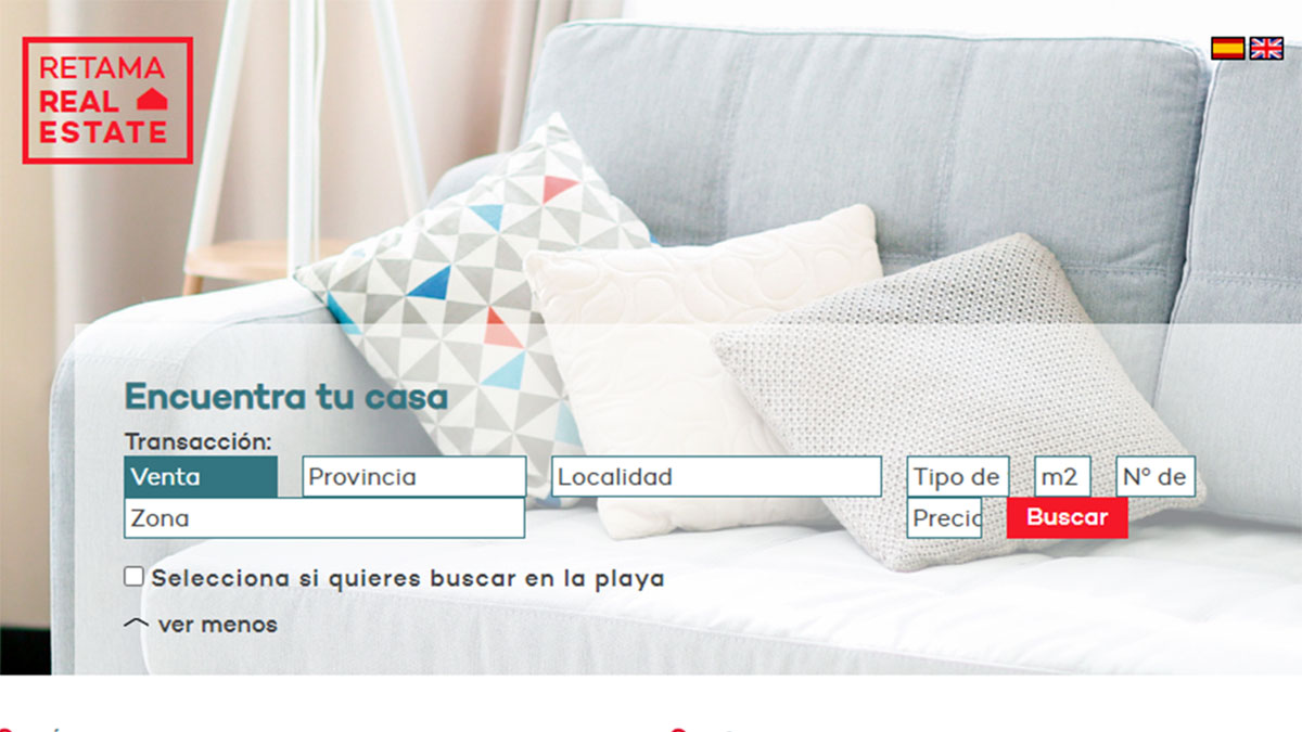 Para acceder al catálogo completo de viviendas disponibles en Retama Real Estate, hay que acceder a la página principal de la inmobiliaria.