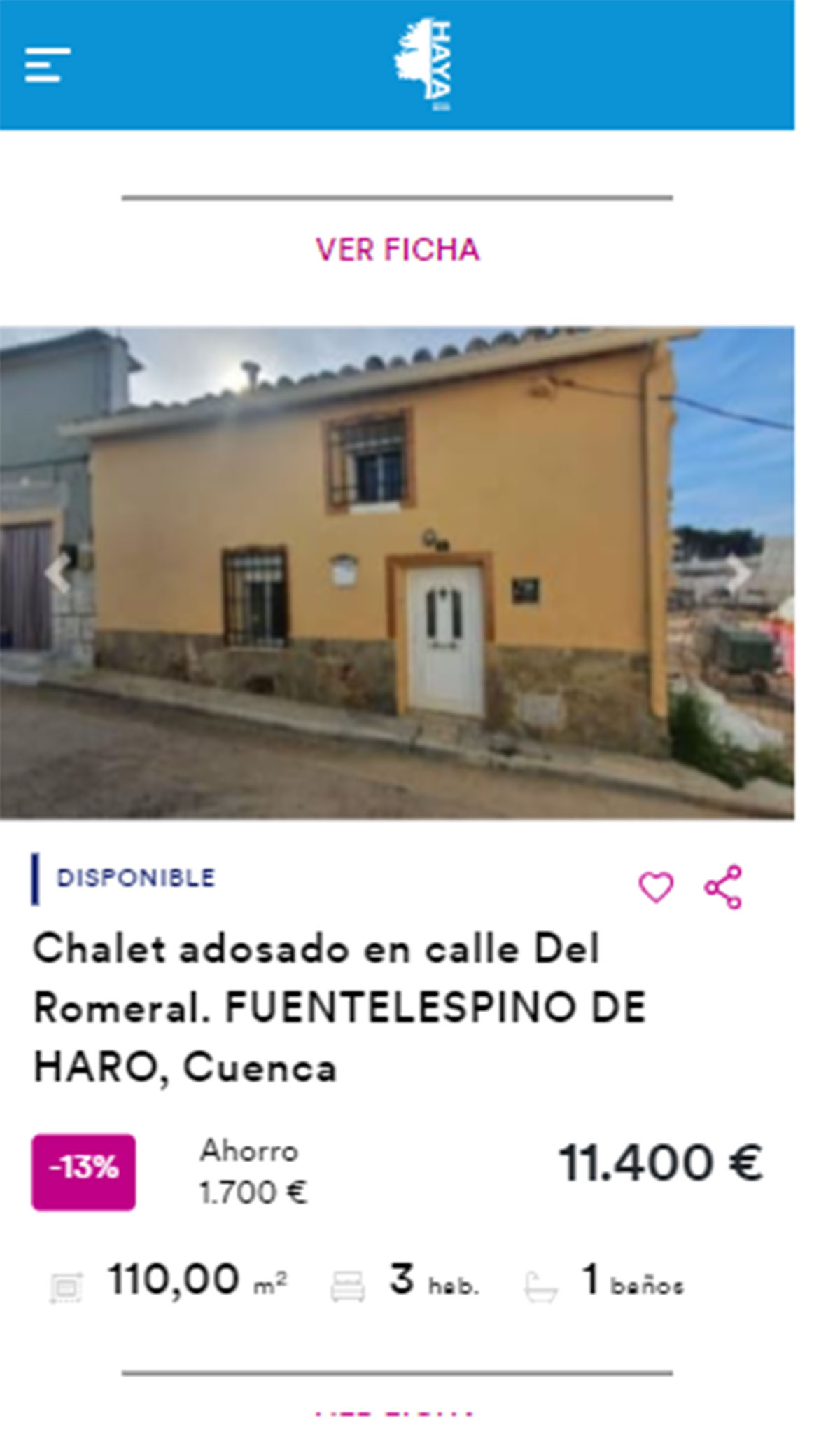 En un rango de precios superior, entre 20.000 y 25.000 euros, destacan las siguientes viviendas con descuentos aplicados disponibles en Haya: