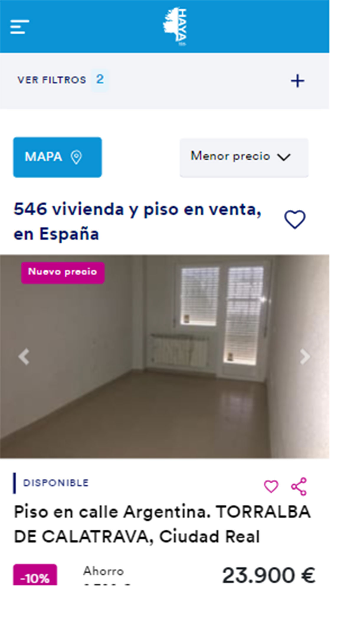 Haya Inmobiliaria tiene 546 pisos desde 23.900 euros con plaza de garaje