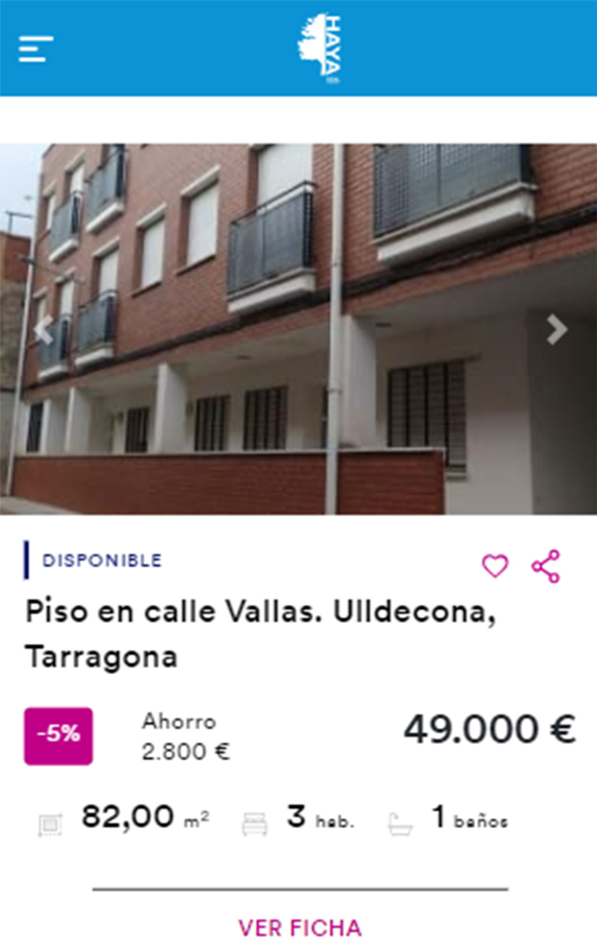 Por 49.000 euros destaca un piso en Ulldecona, Tarragona. Es una vivienda de tres habitaciones y un baño en 82 metros cuadrados.