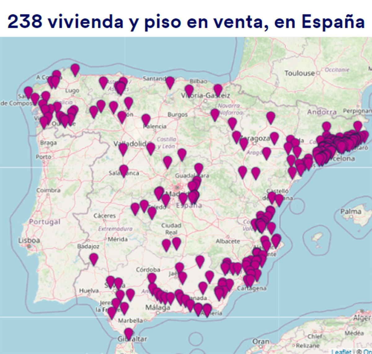 Todas las casas son viviendas unifamiliares, independientes, con parcela propia. Y se encuentran distribuidas por diferentes puntos de España, con mayor concentración en toda la costa del Levante, así como en Andalucía, puntos del centro peninsular y en Galicia.