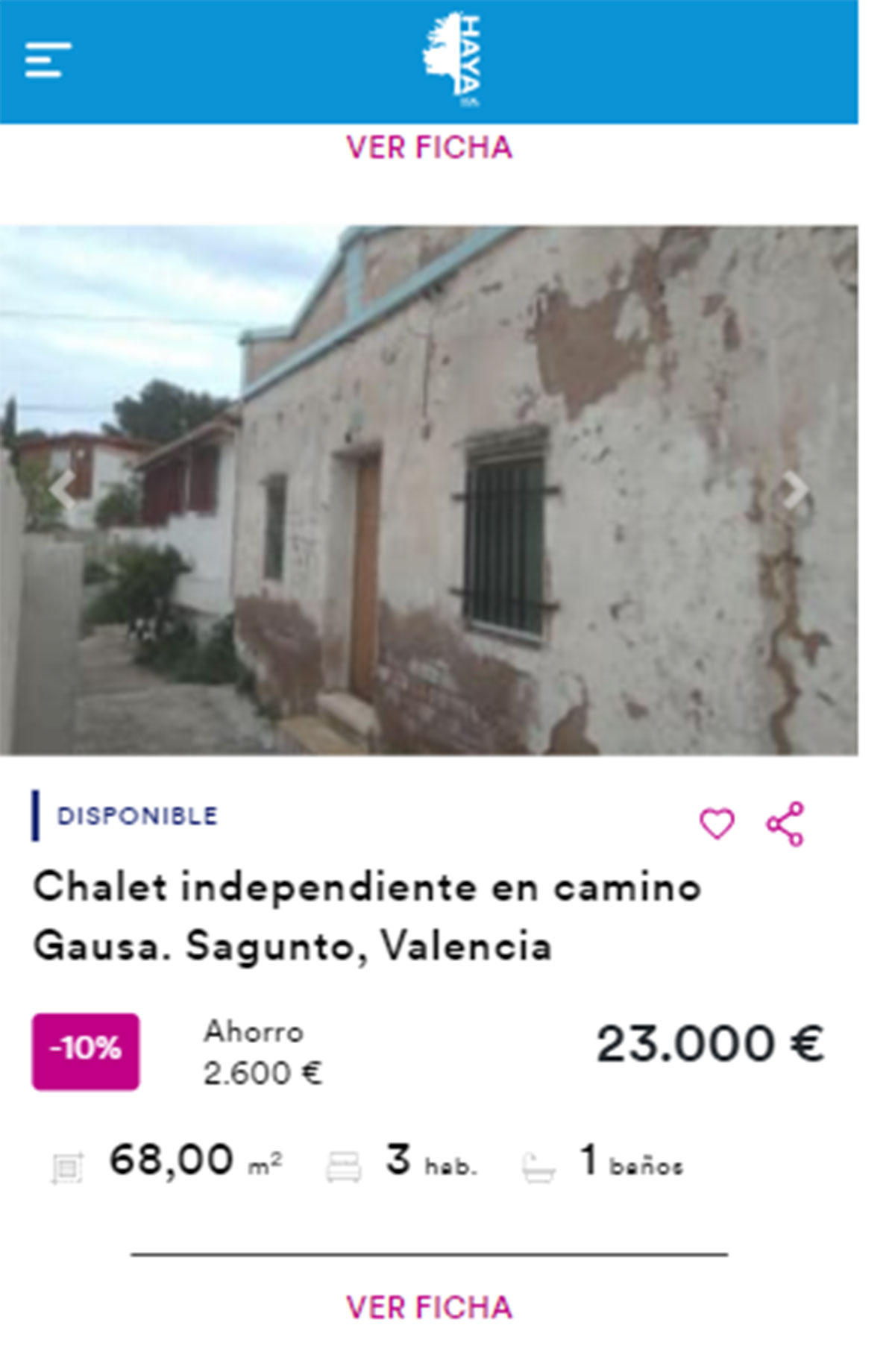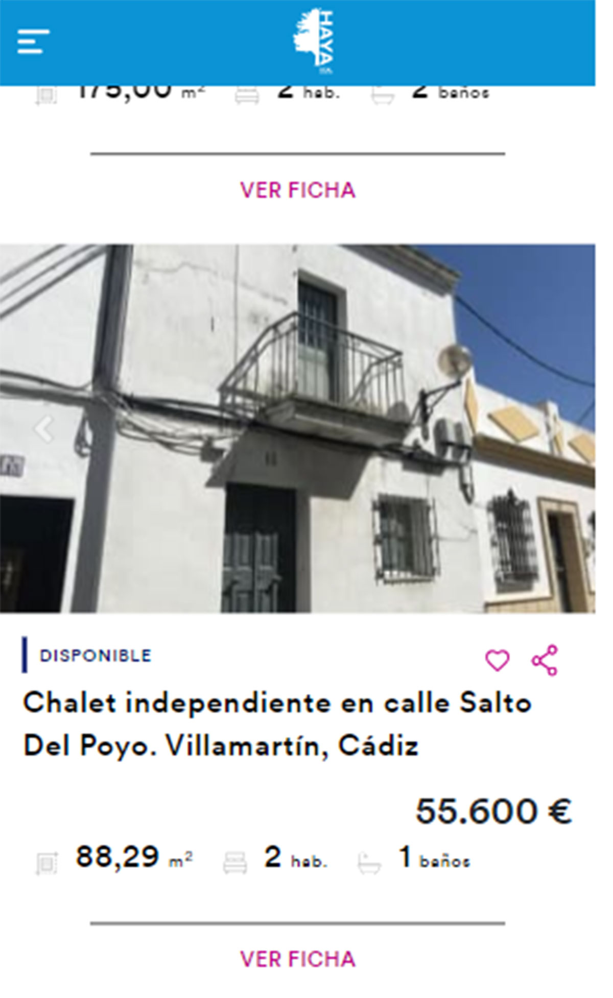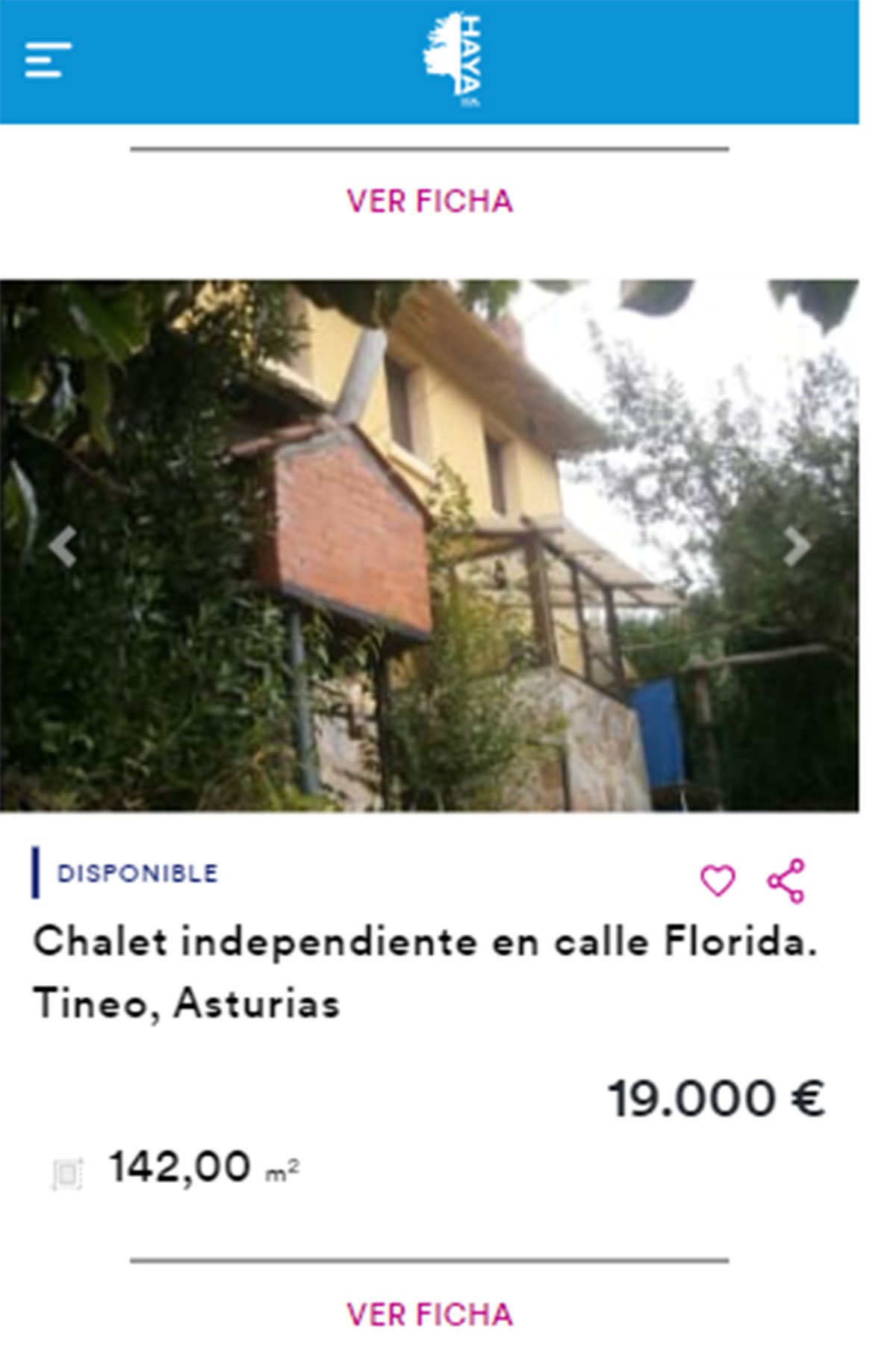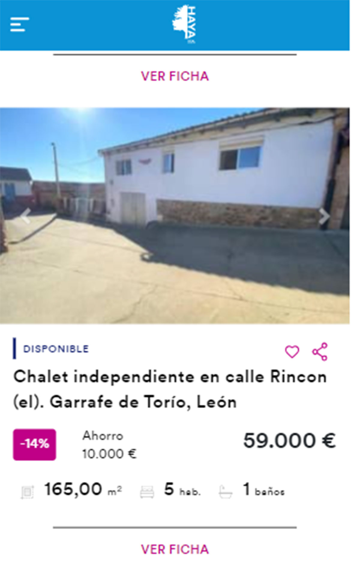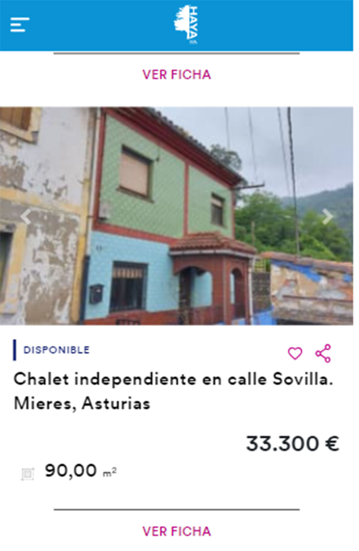 238 chalets de banco a la venta a partir de 11.000 euros. Este es el catálogo de viviendas disponibles que tiene el portal inmobiliario Haya a la venta.