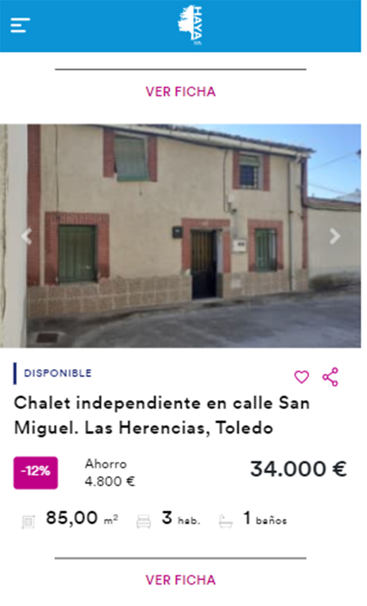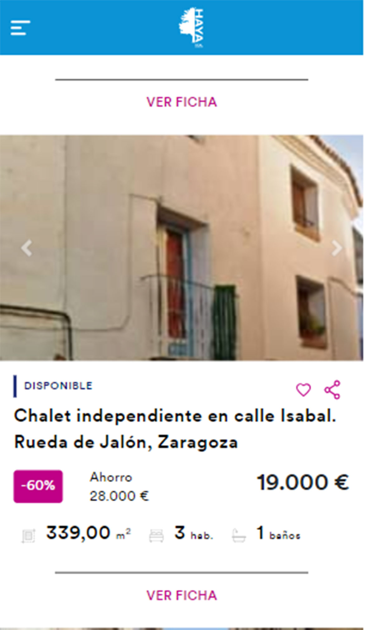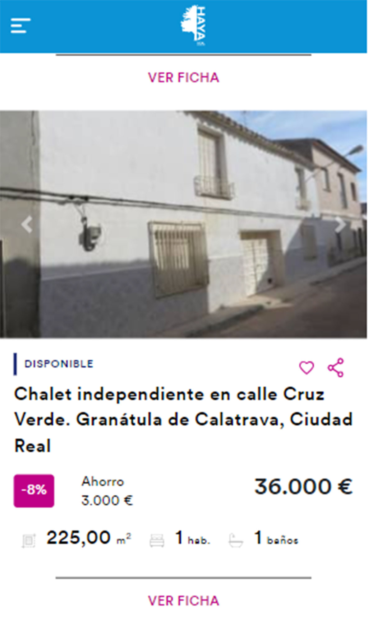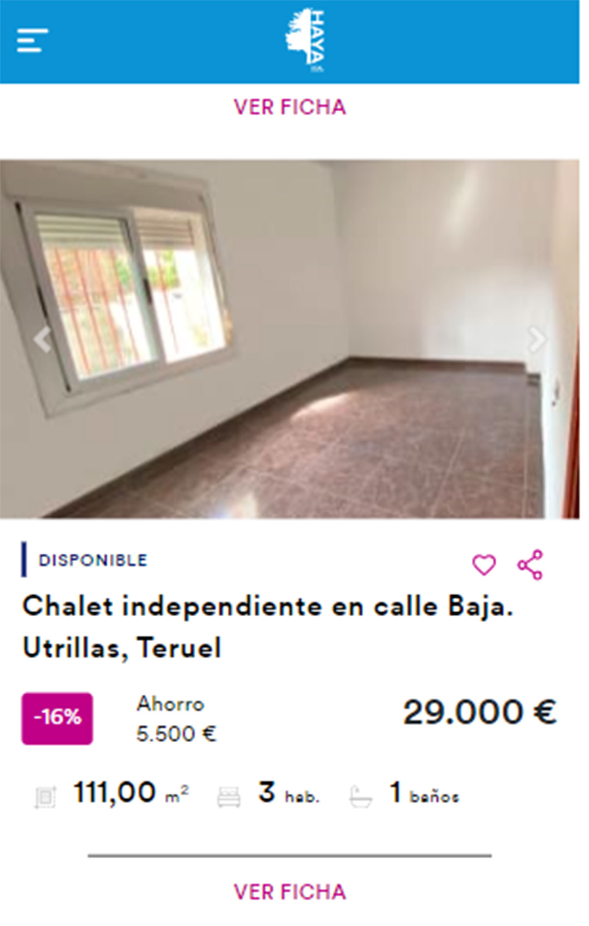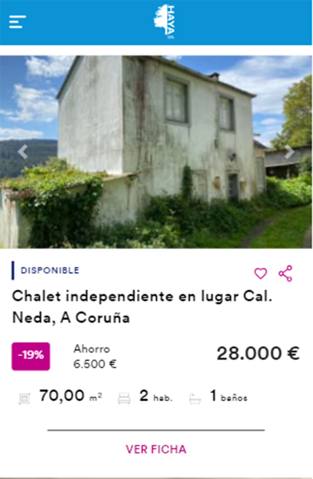 238 chalets de banco a la venta a partir de 11.000 euros. Este es el catálogo de viviendas disponibles que tiene el portal inmobiliario Haya a la venta.