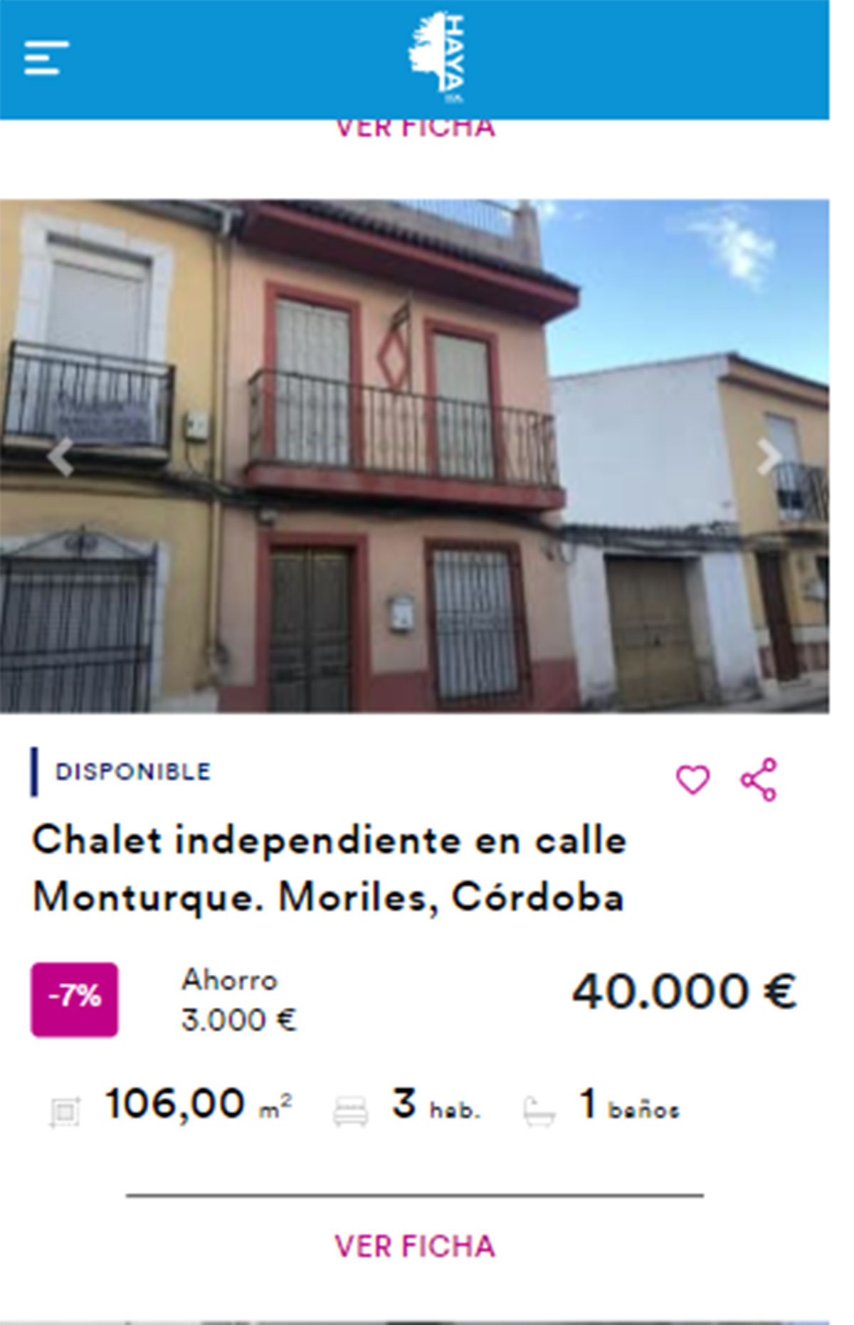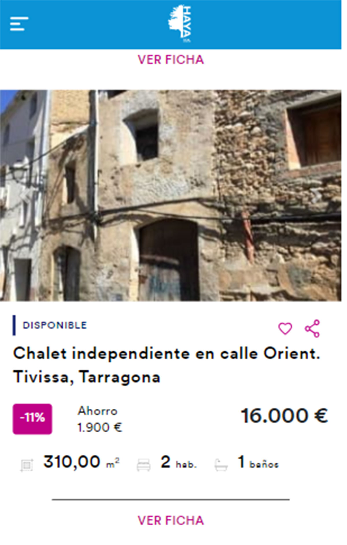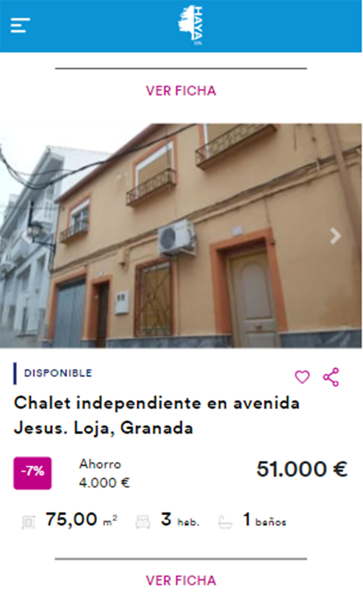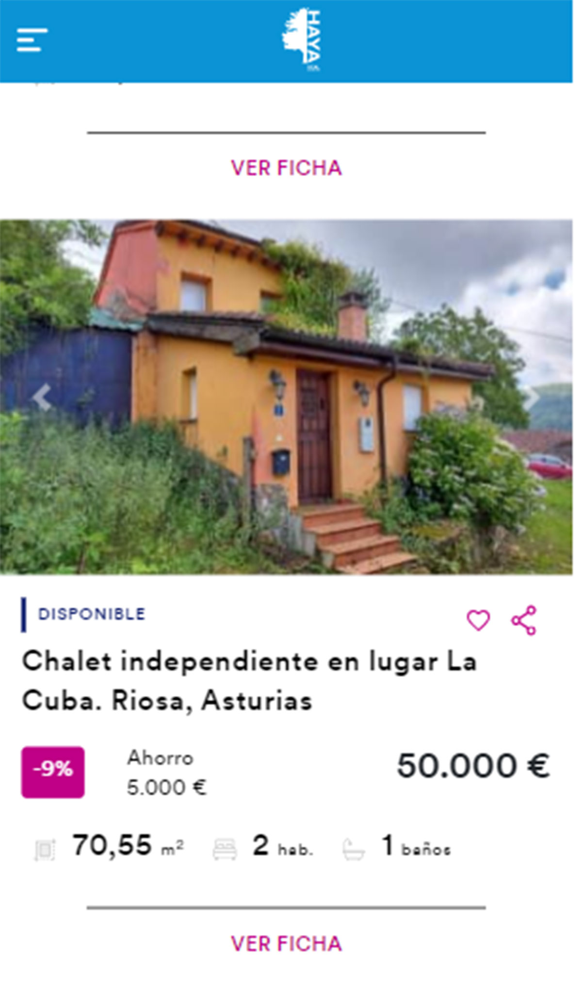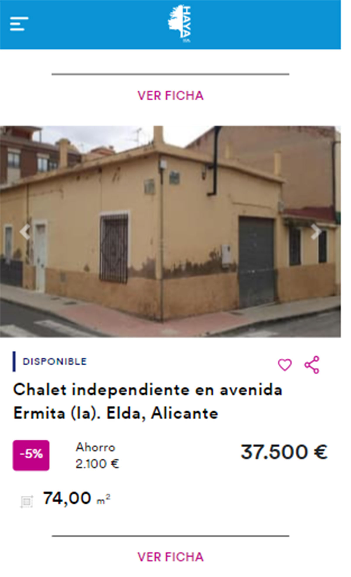 238 chalets de banco a la venta a partir de 11.000 euros. Este es el catálogo de viviendas disponibles que tiene el portal inmobiliario Haya a la venta.