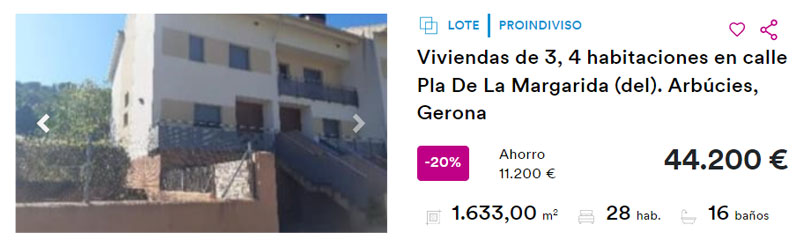 El servicer Haya Inmobiliaria tiene una sección de outlet en viviendas de todo tipo, desde pisos hasta chalets adosados. Estas viviendas propiedad del banco se venden por toda la península, con un precio de partida de 14.000 euros. Además, algunos de estos inmuebles tienen un descuento bastante alto sobre su precio original, por lo que es una buena oportunidad para comprar un vivienda, ya sea para vivir o para invertir.