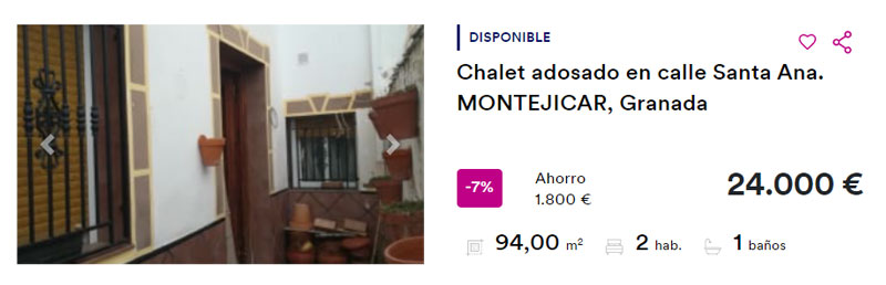 Si aumentamos el rango de precios ligeramente, en torno a los 23.000 euros, podemos encontrar mejores viviendas en el outlet de Haya, como estos dos adosados en la provincia de Granada: