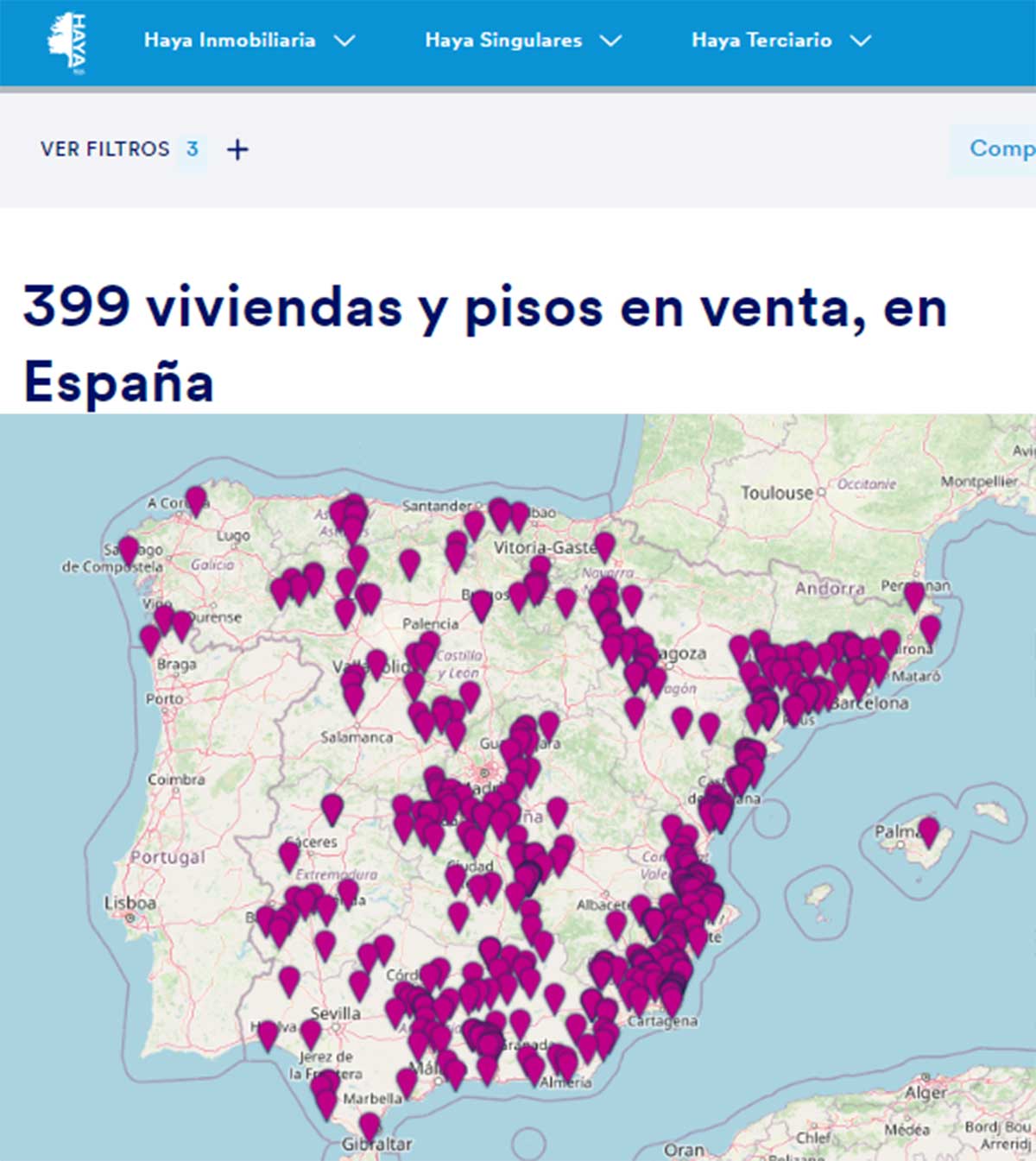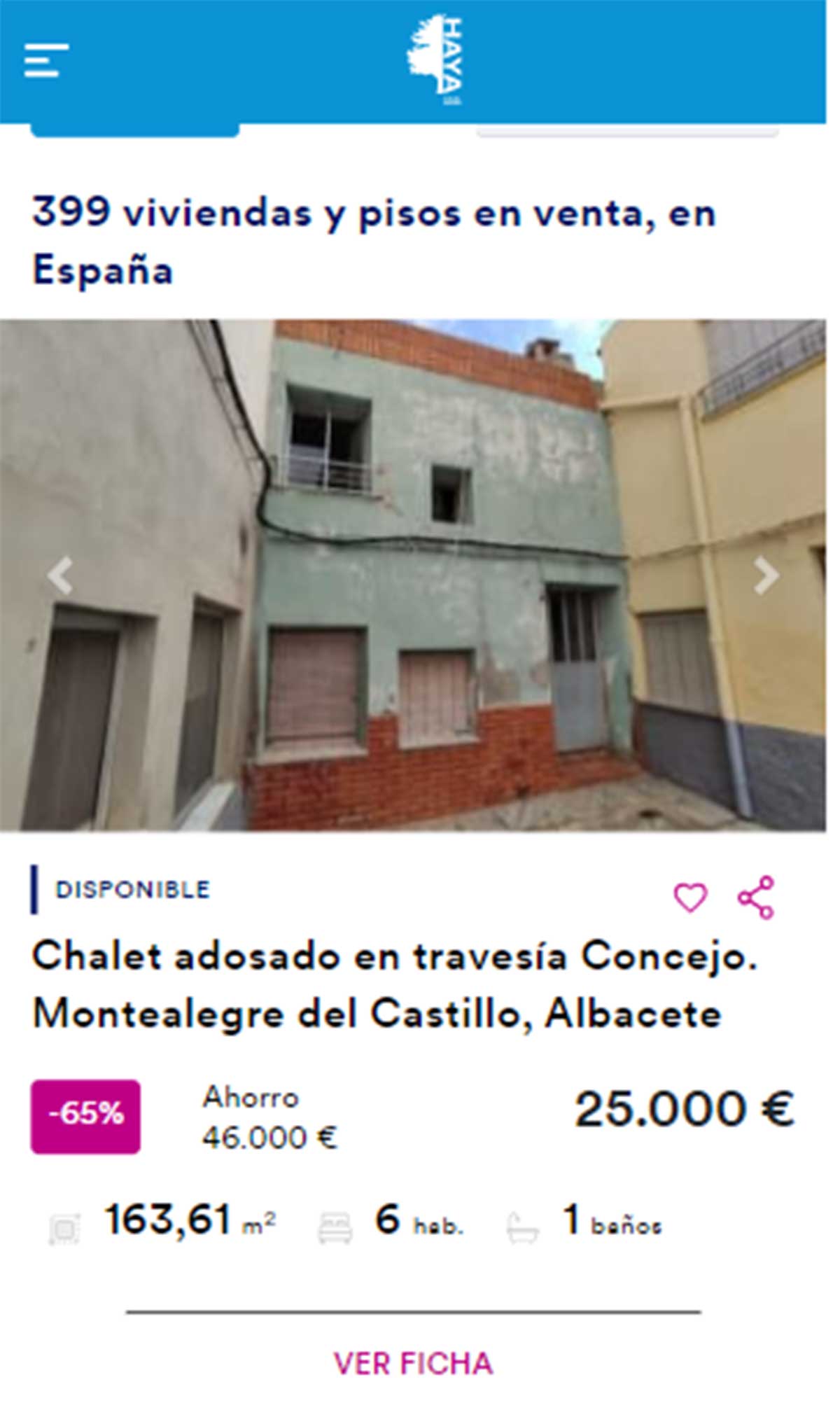 399 chalets adosados de banco a la venta desde 25.000 euros. Este es el catálogo de viviendas disponibles en el portal inmobiliario de Haya y que se encuentran ubicados por toda España.