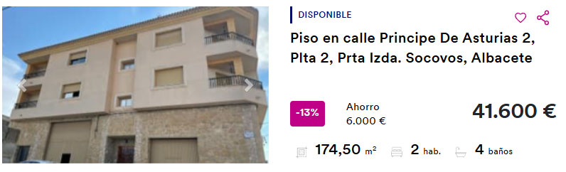 Por un precio ligeramente superior, en torno a los 41.000 euros, hay que destacar los dos siguientes pisos propiedad de Cajamar que se venden en Haya Inmobiliaria.