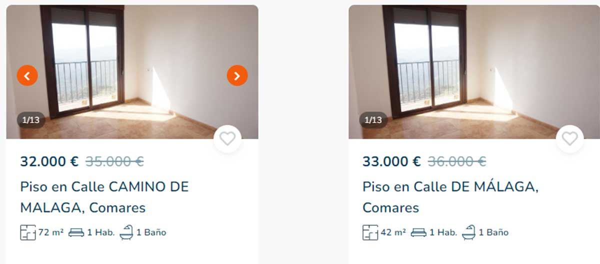 - Piso en venta por 39.000 euros en Comares. Es una vivienda de 51 metros cuadrados con una habitación y un baño.