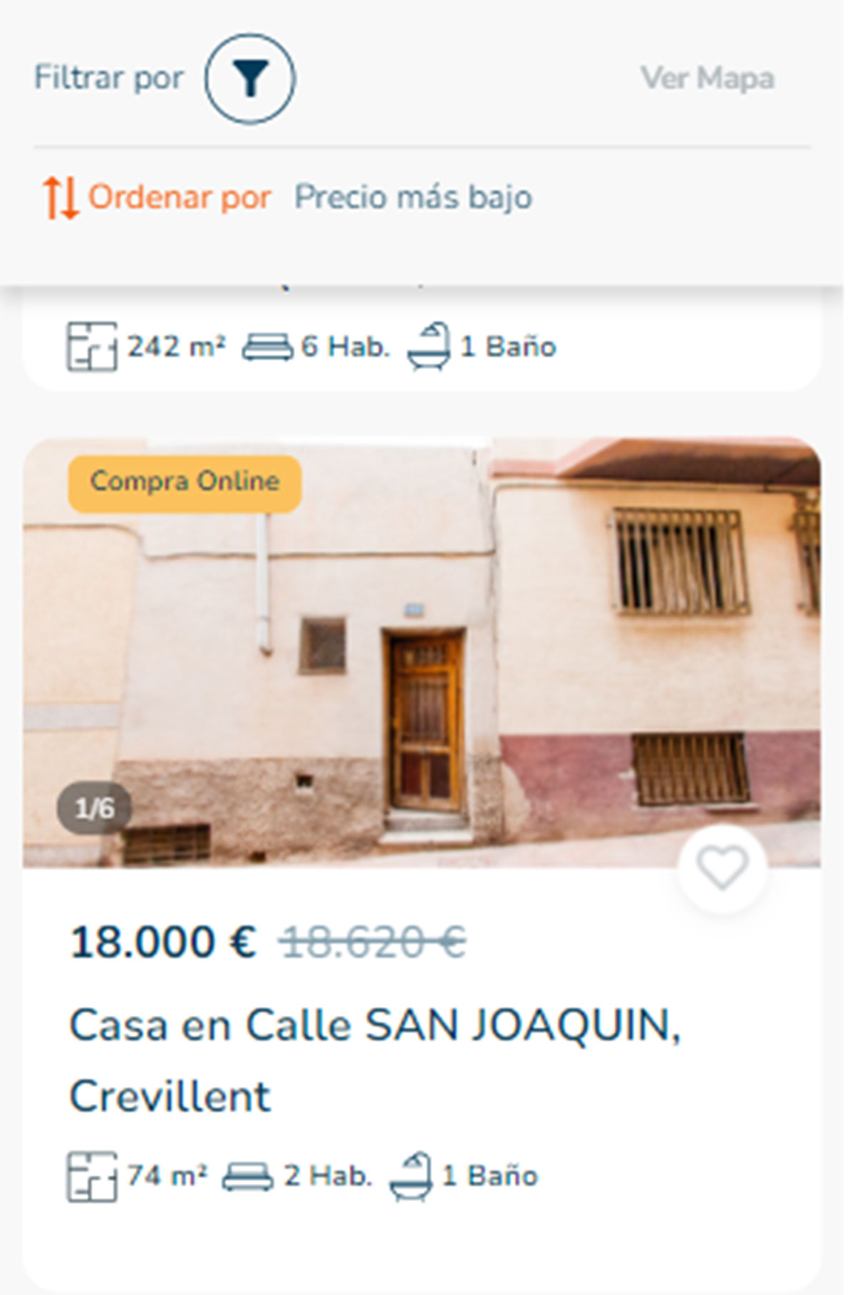 Casa en venta en Crevillent por 18.000 euros. Tiene 74 metros cuadrados con dos habitaciones y un baño.