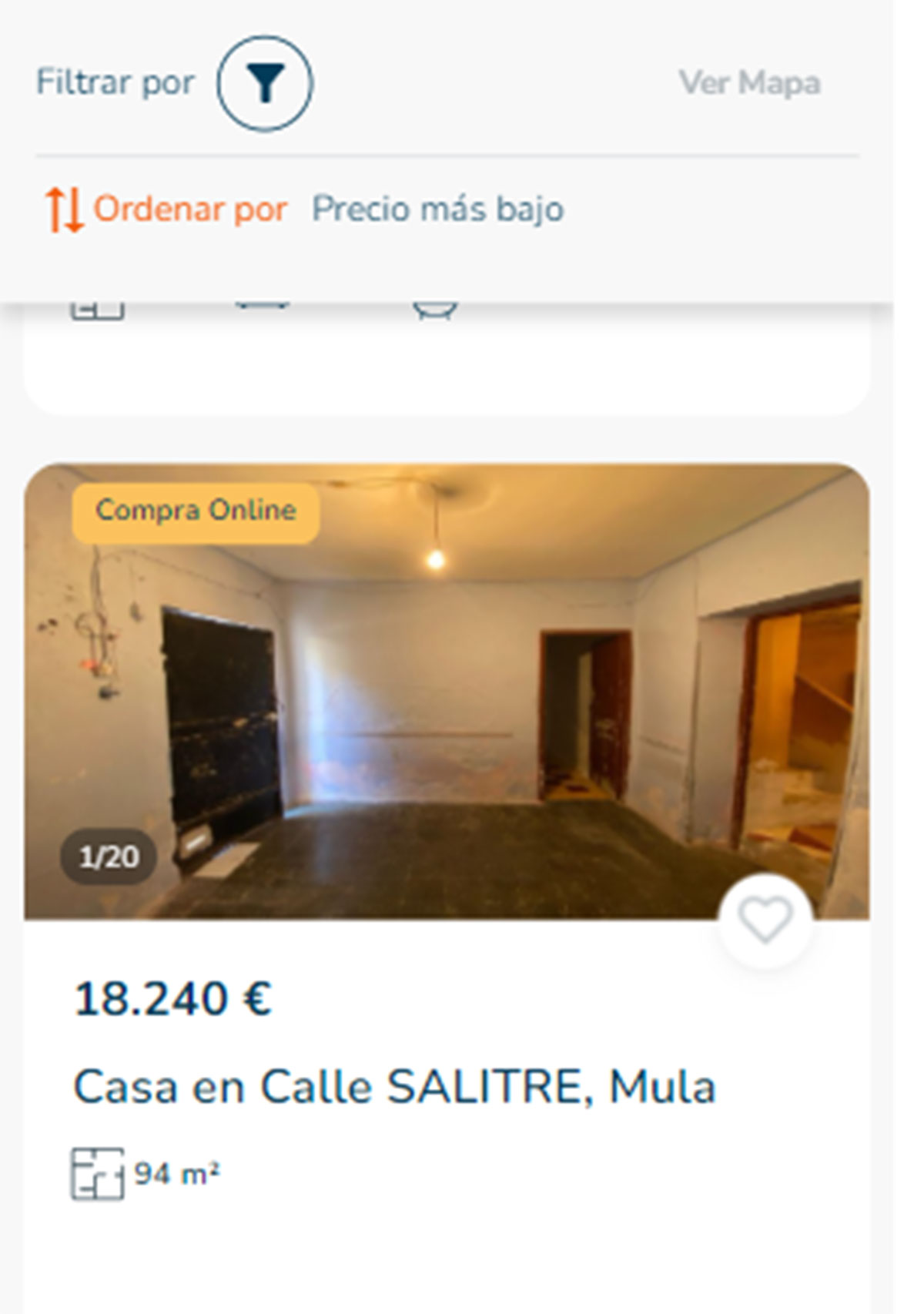 Por 18.240 euros se vende una casa en Mula. Tiene 94 metros cuadrados de superficie.
