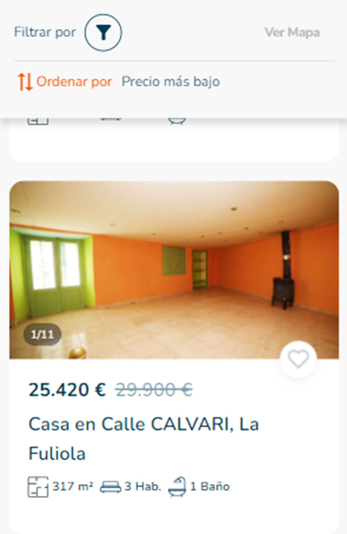 Casa en venta por 25.420 euros en Fuliola. Es una vivienda de 317 metros cuadrados con tres habitaciones y un baño.