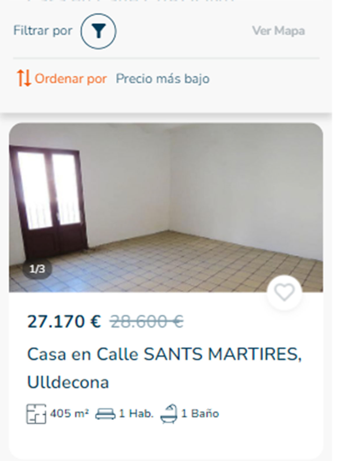 Por 27.170 euros se vende una casa en Ulldecona. Es una vivienda de 405 metros cuadrados con una habitación y un baño.