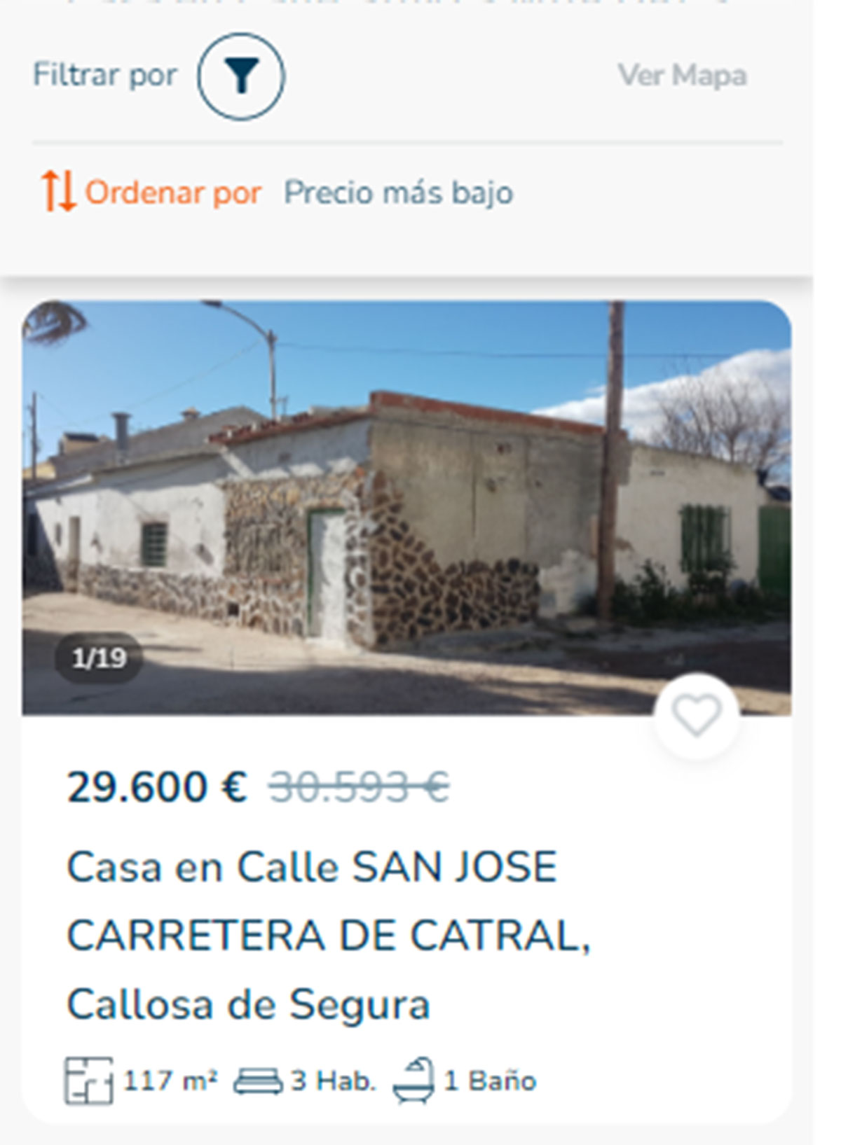 Casa en venta en Callosa de Segura por 29.600 euros. Tiene tres habitaciones y un baño en 117 metros cuadrados.