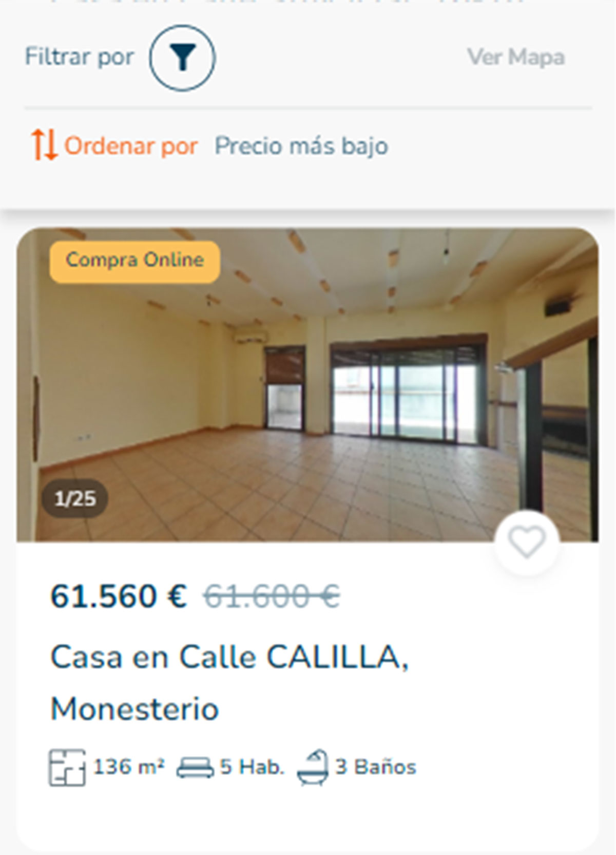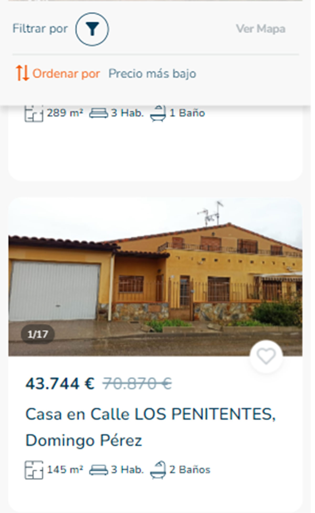 Del total del catálogo, las casas con terraza más baratas en venta en el portal inmobiliario de Holapisos pueden comprarse a partir de 15.000 euros. A continuación puedes consultar algunos de los ejemplos más destacados: