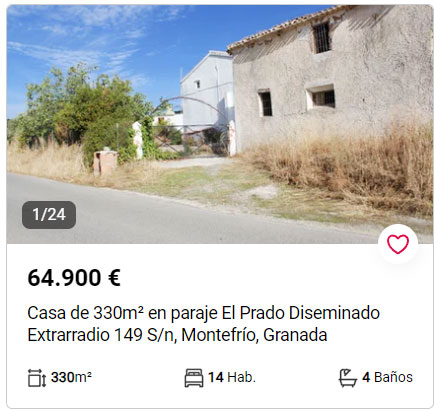 En el catálogo de Aliseda, encontramos esta casa cortijo en Montefrío (Granada). Es el inmueble con piscina más barato de todos y tiene un precio de 64.900 euros. Esta casa cuenta con dos plantas y tres edificaciones auxiliares destinadas a cocina, almacén-vestuarios y trastero. La vivienda cuenta con un total de 330 metros cuadrados de superficie total construida y se distribuye en una planta baja con dos salones-comedores, cocina, tres dormitorios y baño. En la planta alta se ubican hasta seis habitaciones y dos cuartos de baño. Además, en el patio trasero cuenta con una piscina de obra.
