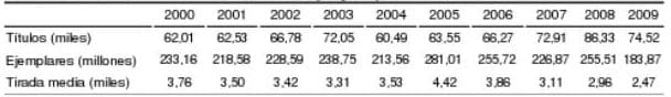 La tirada media fue de 2.467 ejemplares por título, lo que confirma la tendencia decreciente de los últimos años, con una reducción del 16,7 % respecto a 2008. El número de ejemplares editados se sitúa en el nivel más bajo de los 10 últimos años, con 183,87 millones.
