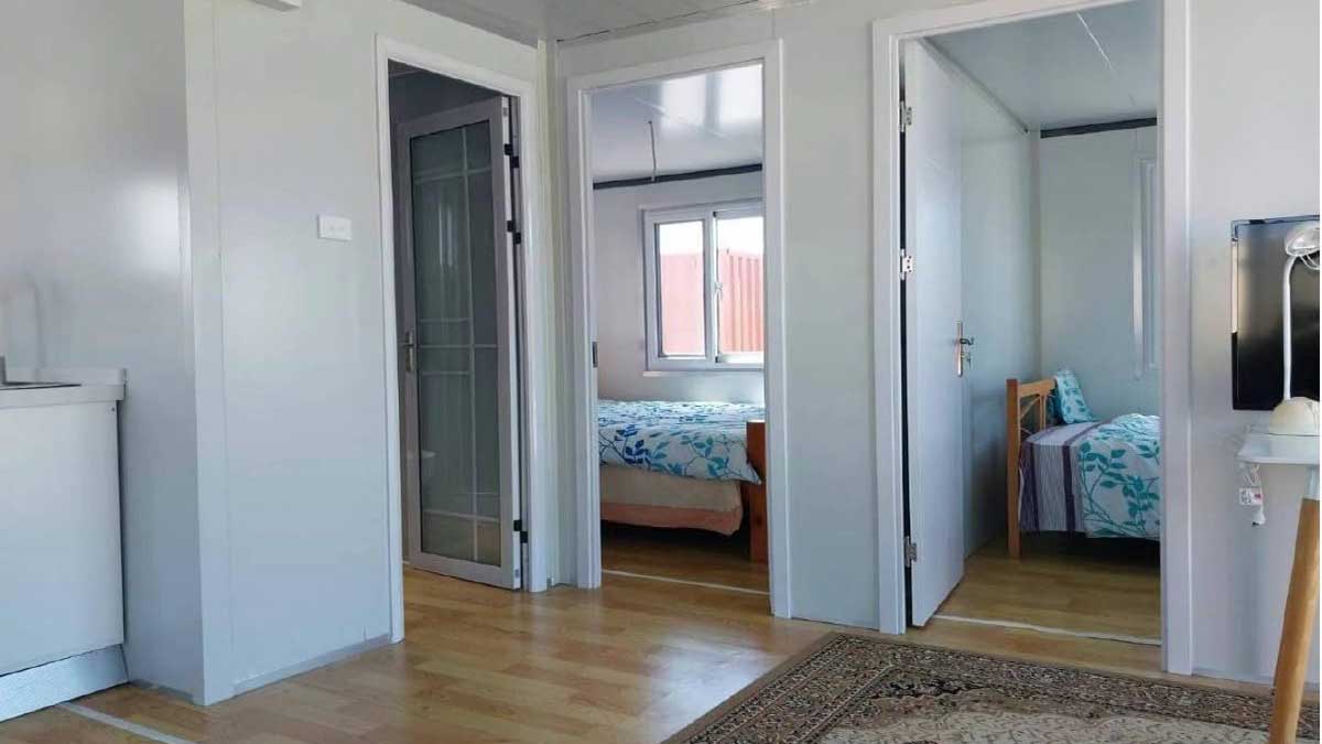 En ambos lados del contenedor se pueden desplegar unos módulos para montar las paredes, el suelo y el techo de la habitación principal y la sala de estar. La instalación es tan sencilla que tardan pocos minutos en terminar de montar toda la casa prefabricada.
