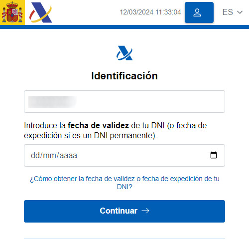 - En la siguiente pantalla hay que indicar el número de DNI del contribuyente