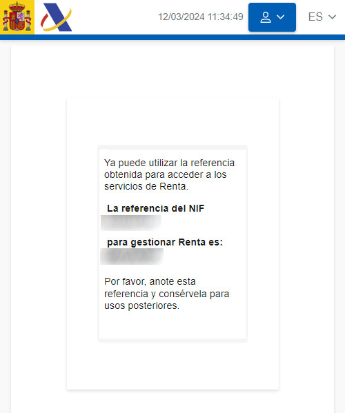 - Al hacerlo, si los datos son correctos, se muestra una referencia de 6 caracteres para gestionar la renta