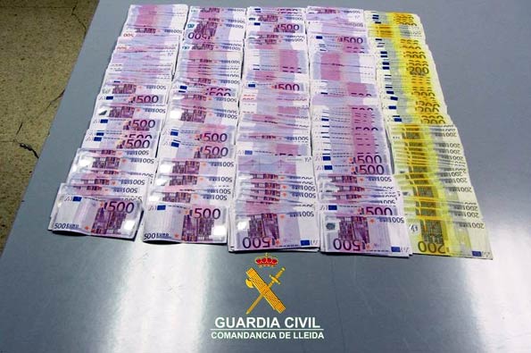 La Guardia Civil ha intervenido 738.200 € mientras realizaba una inspección fiscal en un autobús urbano (línea regular la Seu d’Urgell – Barcelona) en el municipio de Bellver de Cerdanya (Lleida). El dinero interceptado, en billetes de 500 y 200 euros iba oculto en una maleta en el interior de la bodega del autocar, supone una de las mayores cuantías intervenidas en el territorio nacional en aplicación de la regulación del movimiento de medios de pago en prevención del blanqueo de capitales. Los propietarios de la maleta, un hombre de 74 años de edad y una mujer de 70, vecinos de Barcelona, manifestaron que el dinero les pertenecía a ambos a partes iguales.