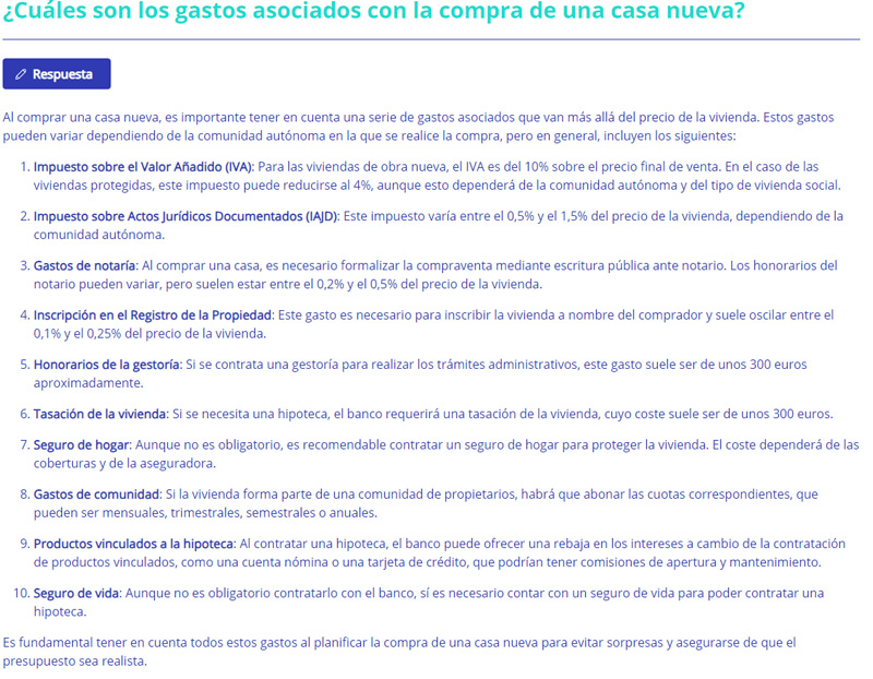 Esta herramienta funciona con la tecnología de ChatGPT. Las respuestas que da se generan de forma automática, nutriéndose de los contenido publicado en el blog de Fotocasa.