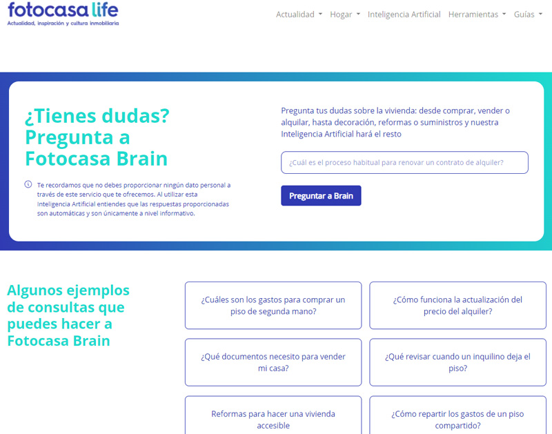 Para poder aprender y resolver dudas concretas, el portal inmobiliario Fotocasa ha lanzado Fotocasa Brain, un herramienta basada en la inteligencia artificial de ChatGPT que permite resolver al instante cualquier duda relacionada con el sector de la vivienda. En esta información te detallamos cómo funciona esta IA y algunos ejemplos de sus múltiples usos.