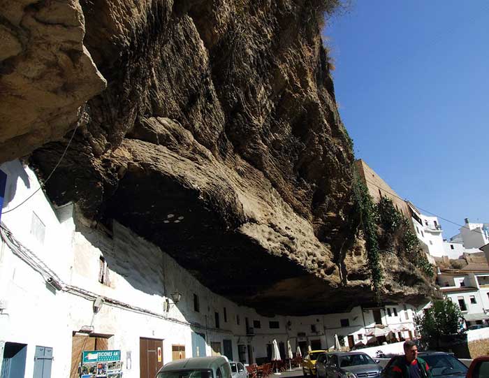 El mayor atractivo para hacer una visita a Setenil de las Bodegas es el diseño de sus casas. Se construyen desde cuevas o se encuentran bajo un saliente rocoso. Además, el color blanco típico de las casas de esta zona de Andalucía hace que resalta aún más la estampa.