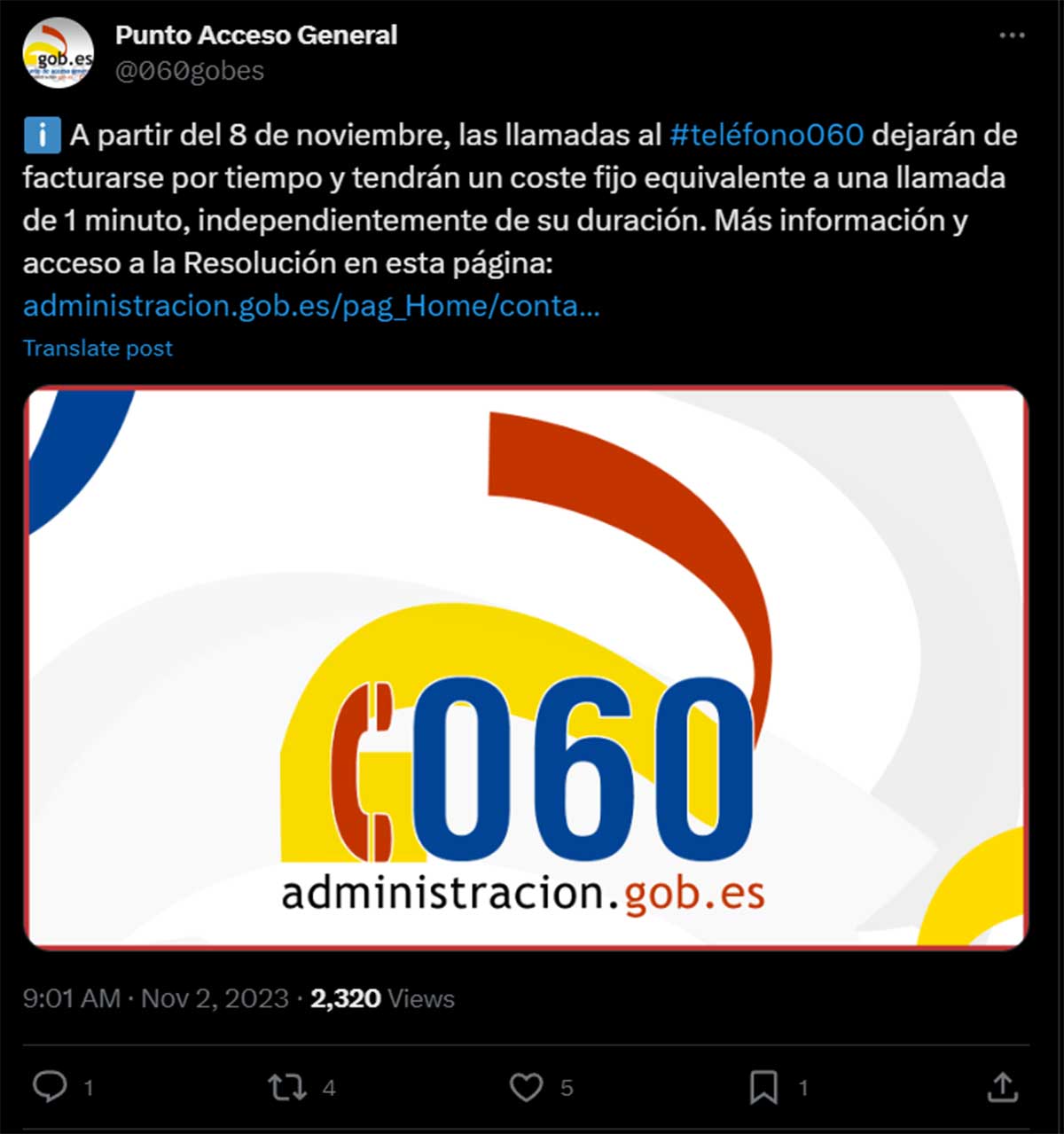 Sin embargo, esta resolución cambió el pasado 27 de julio de 2023 para cambiar el coste de establecimiento de la llamada a este número y está en vigor desde el día 8 de noviembre.