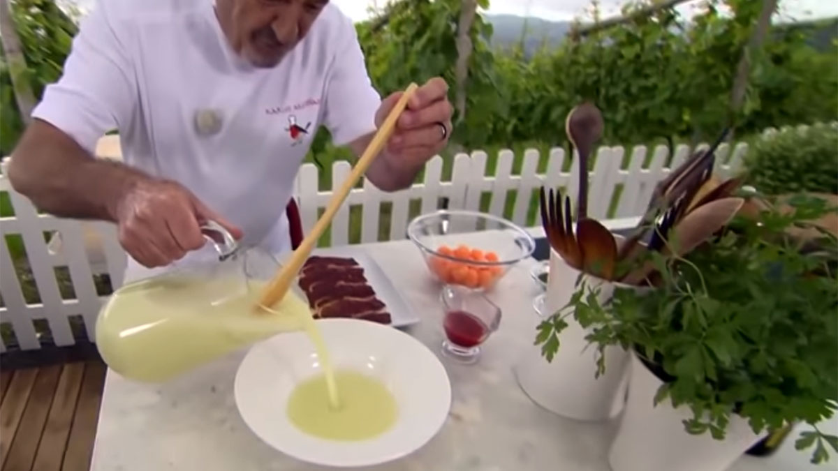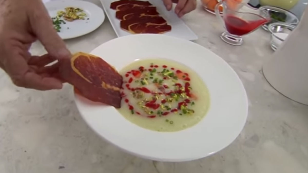 El proceso para preparar este plato de sopa fría de melón con jamón es muy sencillo. En concreto, los pasos a seguir, según detalla Arguiñano, son los siguientes: