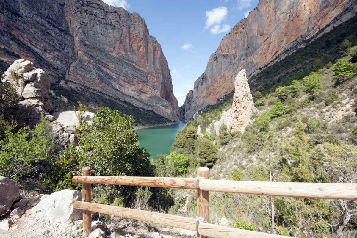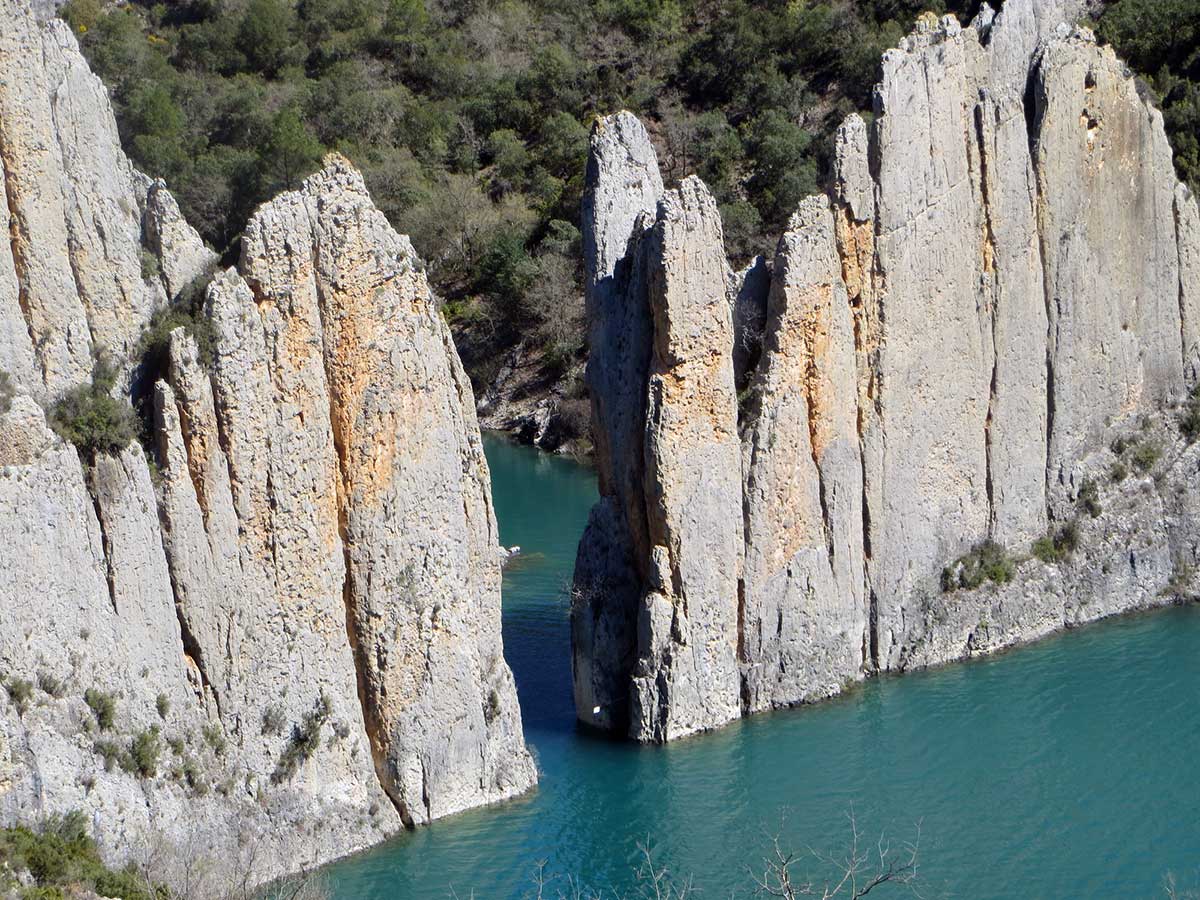 Después de ascender por el camino marcado, el visitante llega hasta el Congost de Mont RebeI. Debe atravesarlo a través de un camino un tanto peculiar abrigado por paredes de oca que en algunos tramos alcanzan los 500 metros de altura.