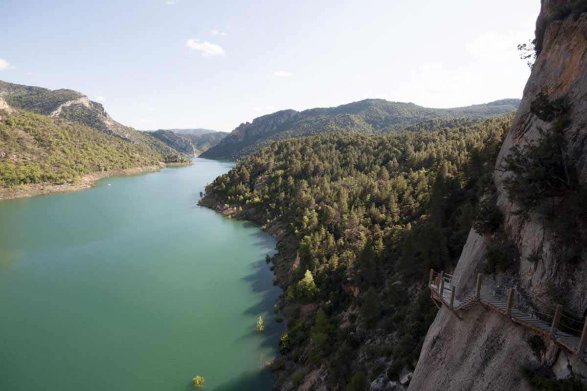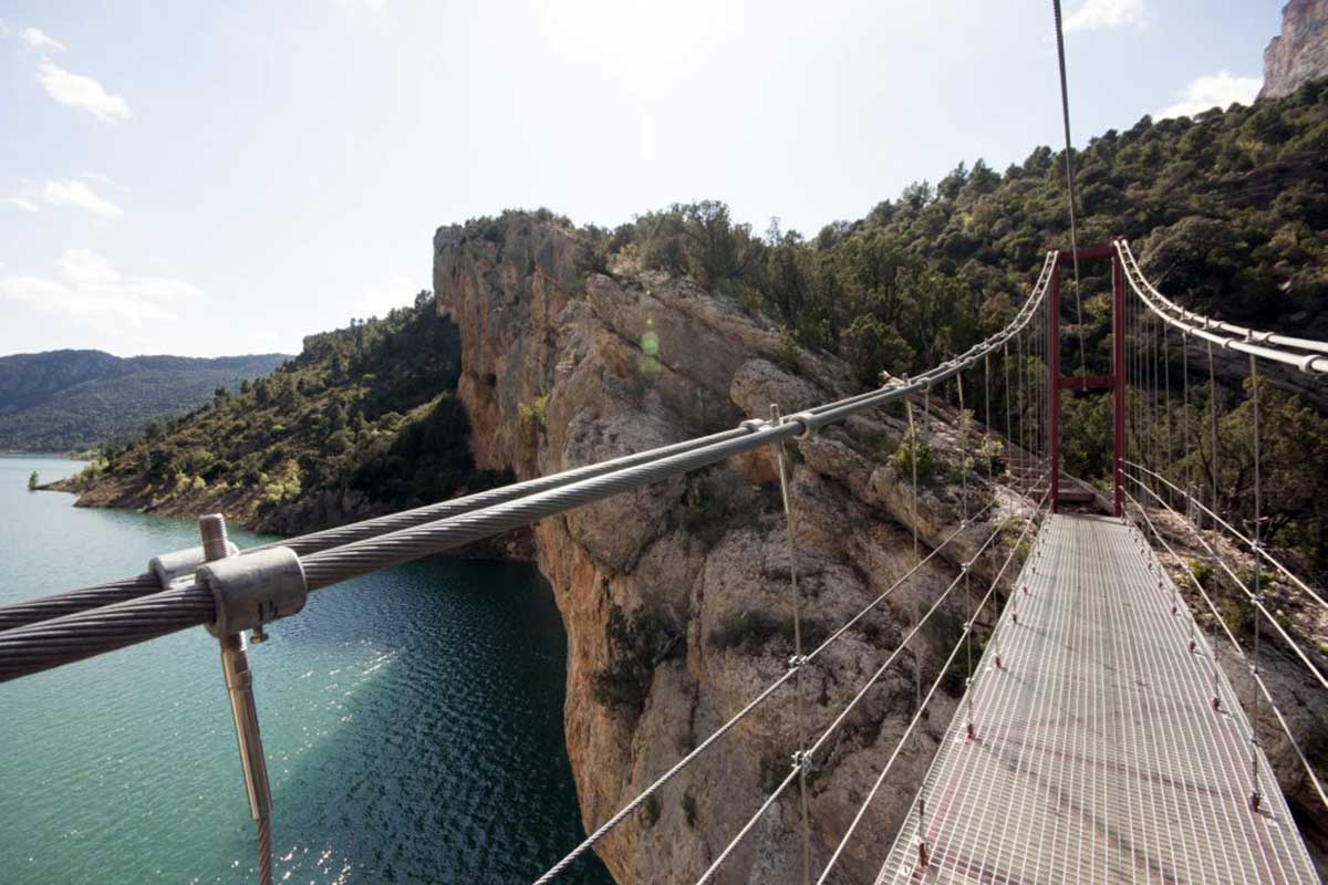 La ruta de las Pasarelas de Montfalcó es una de las más espectaculares de la península y de las mejores rutas de senderismo de España. Es un trayecto que discurre entre las provincias de Aragón y Cataluña en el que el visitante puede disfrutar de unas vistas y un paisaje inigualable porque el camino avanza por pasarelas de madera y escaleras colgadas de una pared de roca. Un gran desfiladero y un puente colgante culminan este recorrido que se extiende a lo largo de 8 kilómetros en una ruta lineal.
