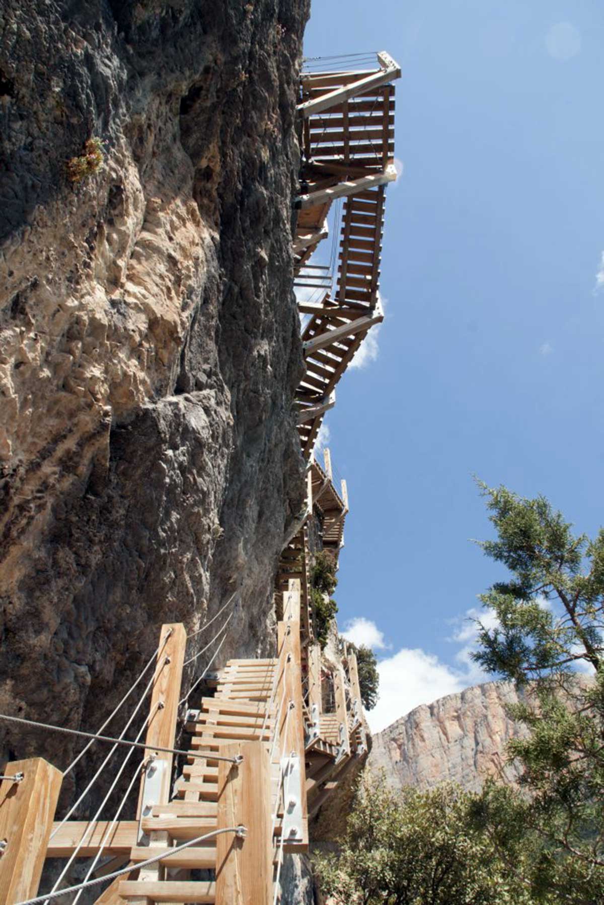 La vertiginosa ruta por las escaleras de madera del desfiladero de las Pasarelas de Montfalcó