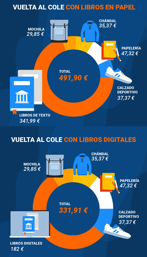 En un esfuerzo por reducir los costos, muchas familias optan por una vuelta al cole digital. Según el estudio del comparador de precios, el coste medio de un regreso a las aulas con los libros de texto digitales se ha mantenido por debajo del kit tradicional, aunque también ha experimentado un aumento mayor en los últimos dos años, del 28 %, mientras que los libros convencionales han aumentado un 17 %.