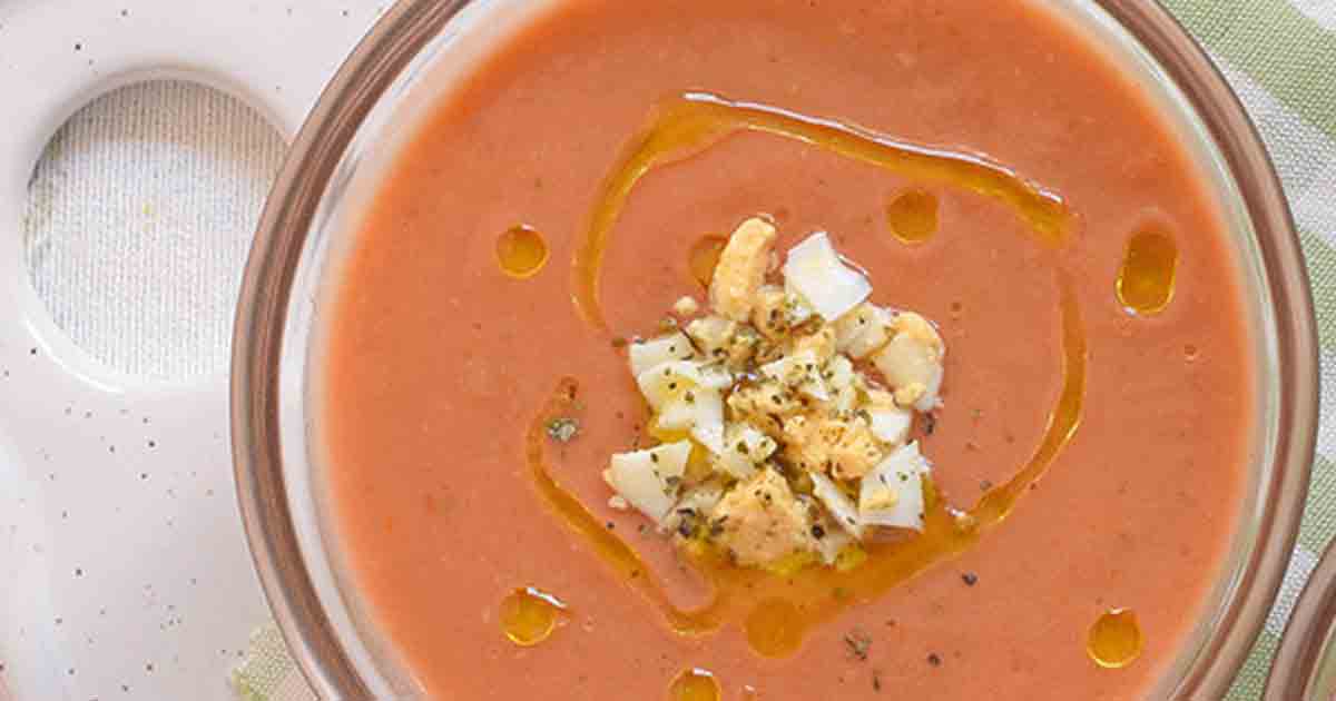 El gazpacho es una mezcla sencilla y sabrosa que se compone de los siguientes ingredientes: Tomates, pimiento verde, pepino, ajo, agua, vinagre, aceite de oliva y pan.