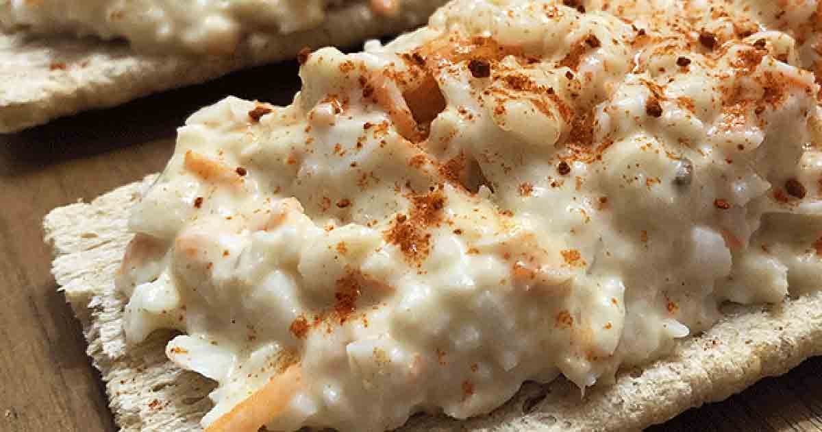 Cortar unos palitos de cangrejo en trozos muy pequeñitos, hacer lo mismo con cebolla y mezclarlo todo con mayonesa convierte a tres simples ingredientes en una cena deliciosa.