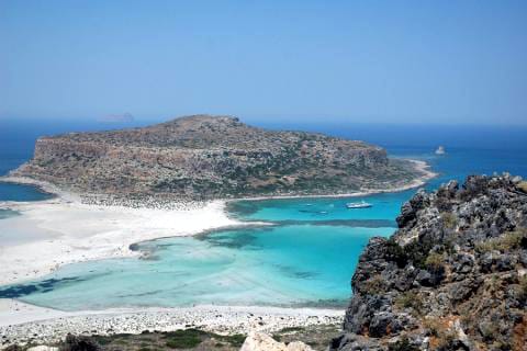 La playa de Balos se encuentra en la península de Gramvousa al noroeste de Creta. Sus aguas cristalinas y su fina arena blanca, la convierten en una de las zonas vírgenes más bellas de Grecia. El mar gana terreno a la playa a modo de pequeñas lagunas, algunas de ellas de muy poca profundidad, por lo que es ideal para el juego de los niños sin tener que preocuparse de las inclemencias del mar mientras se toma el sol. En los alrededores podemos encontrar interesantes locales y hoteles. Algunos de ellos con un aire más caribeño que mediterráneo.