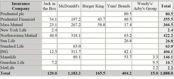 Un estudio de la Universidad de Harvard afirma que las empresas de seguros de vida y sanitarios de EE. UU., Canadá y Europa poseen cerca de 1.880 millones de dólares (1.380 millones de euros) en acciones de empresas de comida rápida, y “anteponen el hecho de ganar dinero al bienestar social”. El artículo aparece publicado en el último número del American Journal of Public Health (AJPH, por sus siglas en inglés). El artículo subraya la tensión existente entre la búsqueda de optimización de los beneficios y el servicio público sanitario.