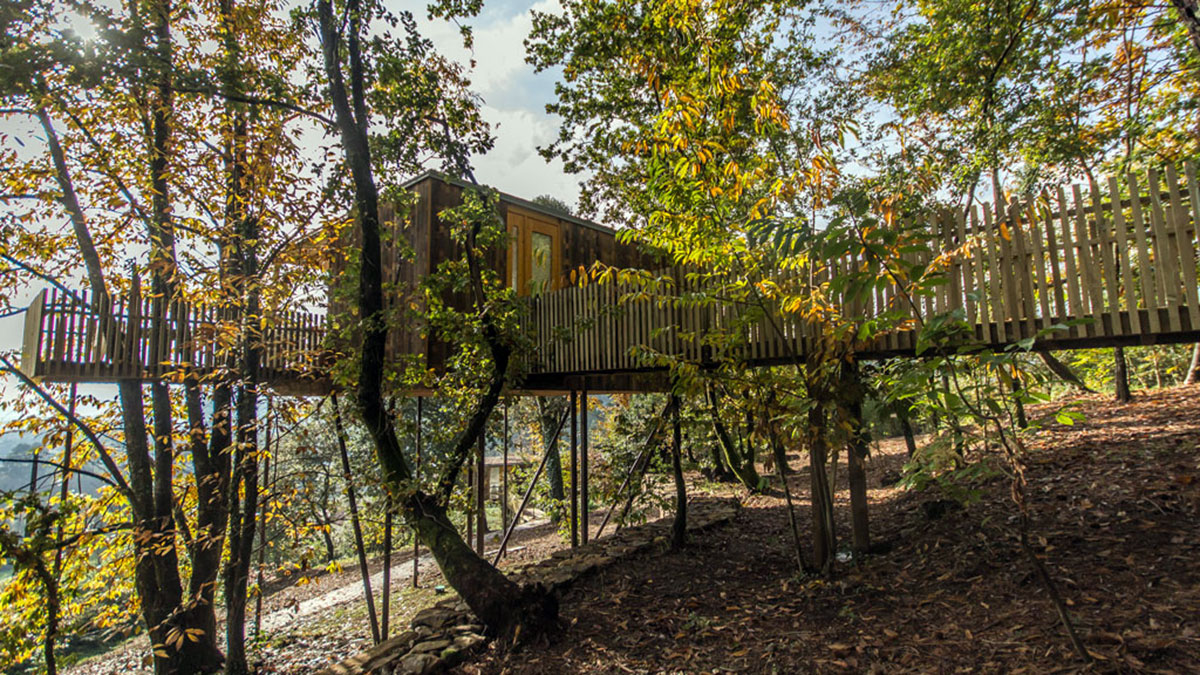 Cabañitas del Bosque es un conjunto de casas rurales ubicadas en las alturas de los árboles que permiten disfrutar de una experiencia única e inolvidable en la profundidad de los bosques gallegos.