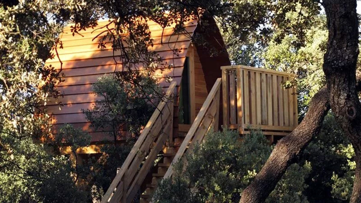 El Xalet de Prades en Tarragona es un complejo turístico compuesto de varios tipos de alojamiento, entre ellos, las casas en los árboles.