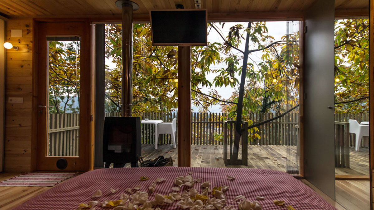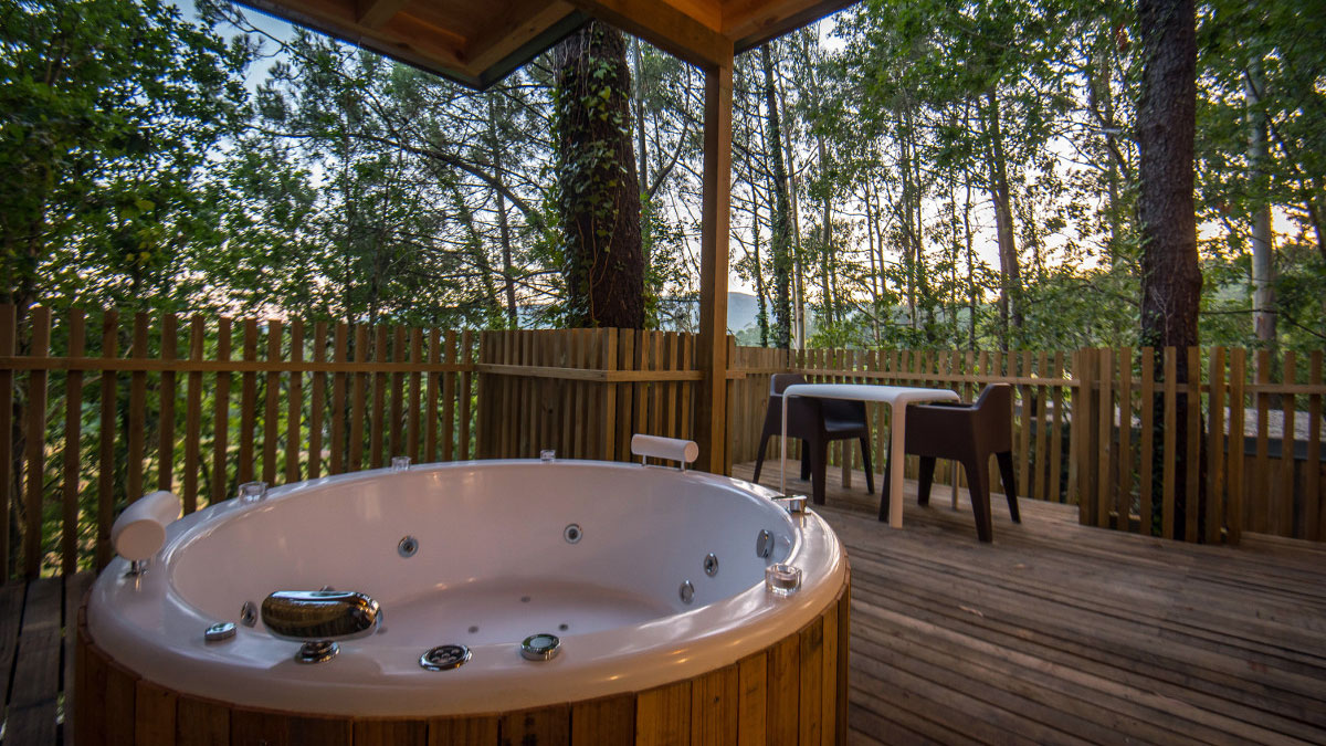 Las casas árbol cuentan con todo tipo de comodidades para pasar unos días en las alturas sin echar nada en falta. El servicio incluye cama doble, jacuzzi, baño, televisión y calefacción.