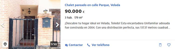 Por un precio ligeramente superior, no mayor a 90.000 euros, también es posible encontrar en el catálogo de idealista dos chalets propiedad de banco y con piscina privada.